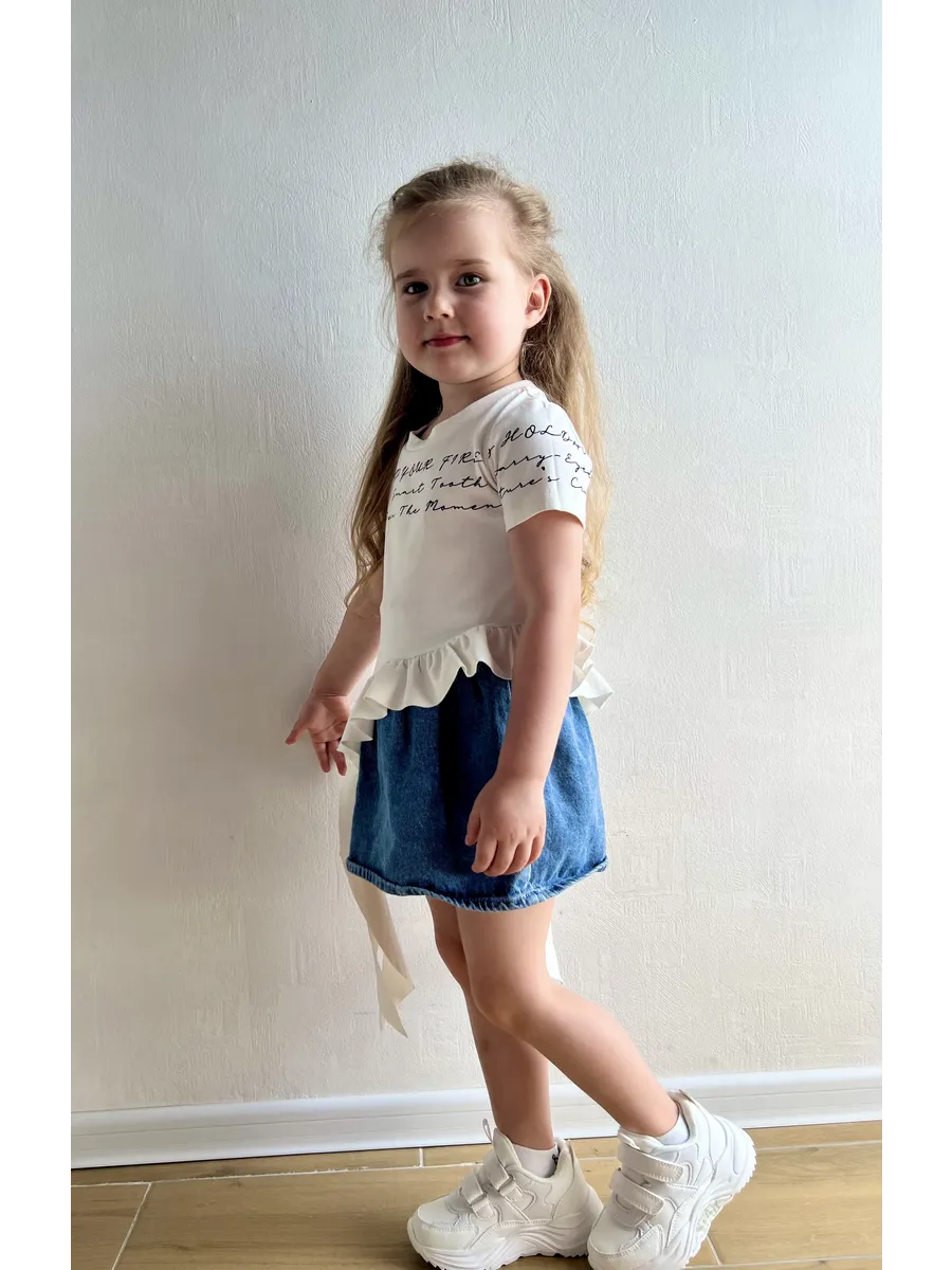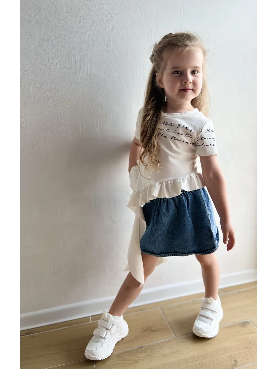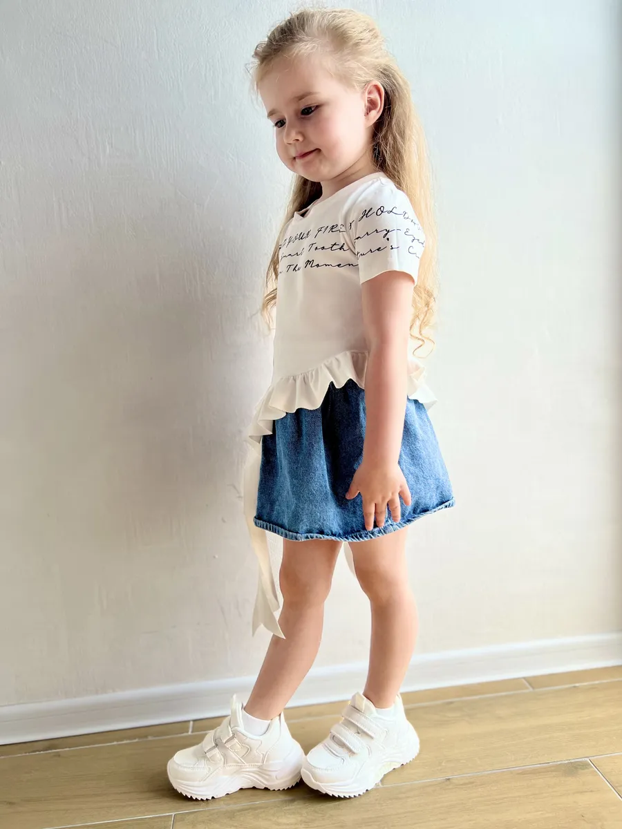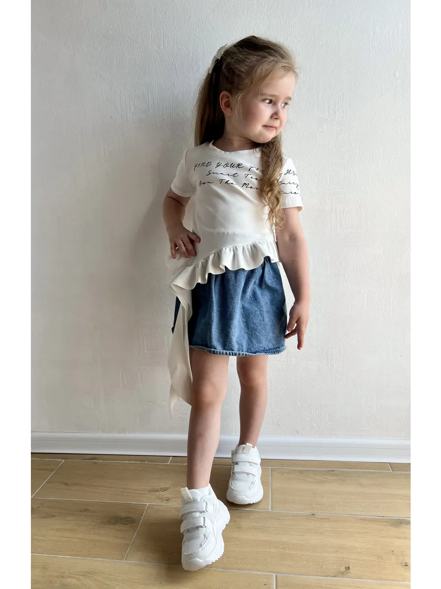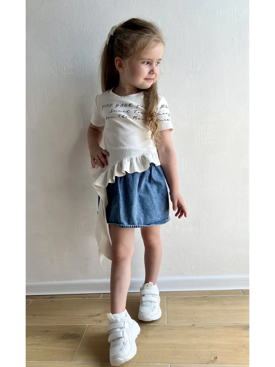 Футболка для девочек от YJ ST - это стильное и комфортное решение для повседневных образов. Модель выполнена из мягкого хлопка и украшена милой надписью, а асимметричный край с воланами добавляет игривости. Благодаря полуоблегающему крою футболка обеспечит максимальный комфорт в течение всего дня. Она станет отличным выбором для прогулок, встреч с друзьями или просто для отдыха дома.