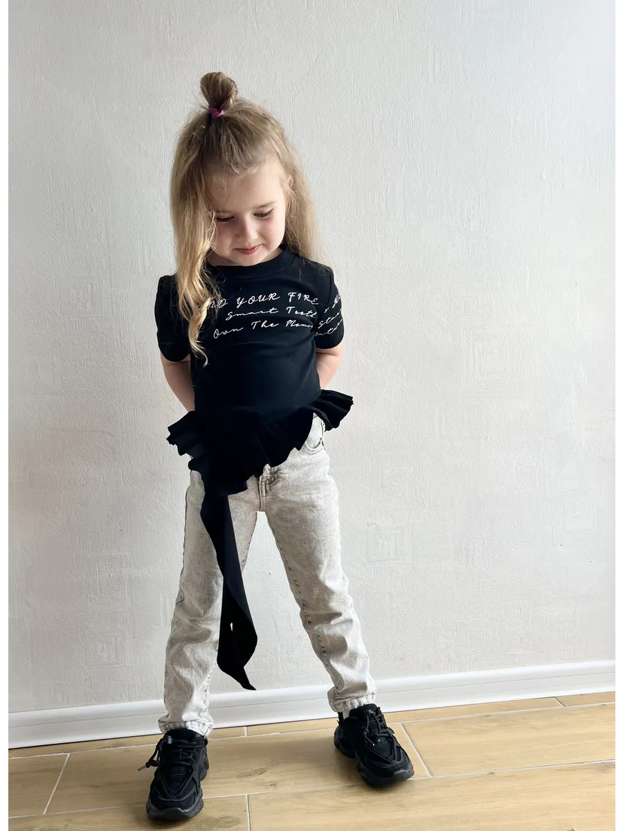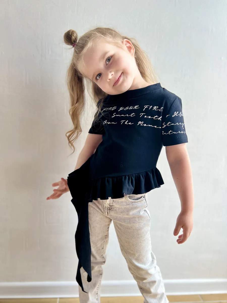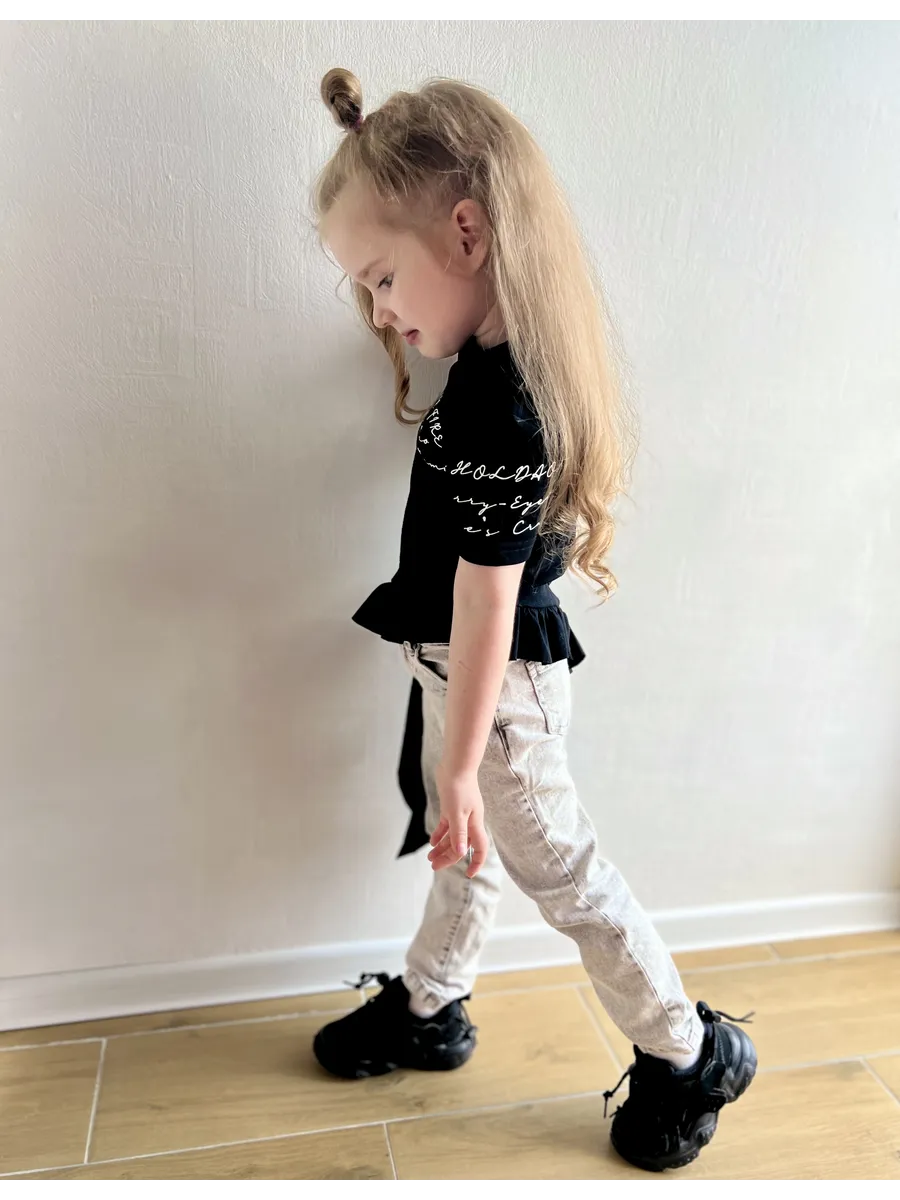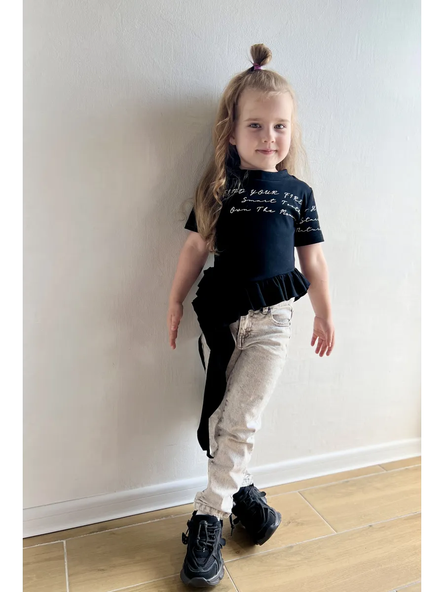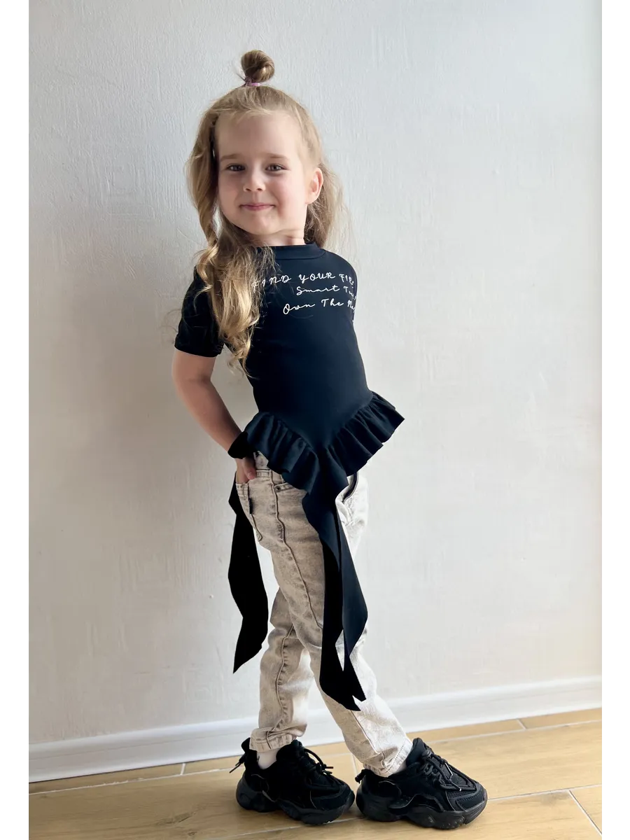 Футболка для девочек от YJ ST - это стильное и комфортное решение для повседневных образов. Модель выполнена из мягкого хлопка и украшена милой надписью, а асимметричный край с воланами добавляет игривости. Благодаря полуоблегающему крою футболка обеспечит максимальный комфорт в течение всего дня. Она станет отличным выбором для прогулок, встреч с друзьями или просто для отдыха дома.