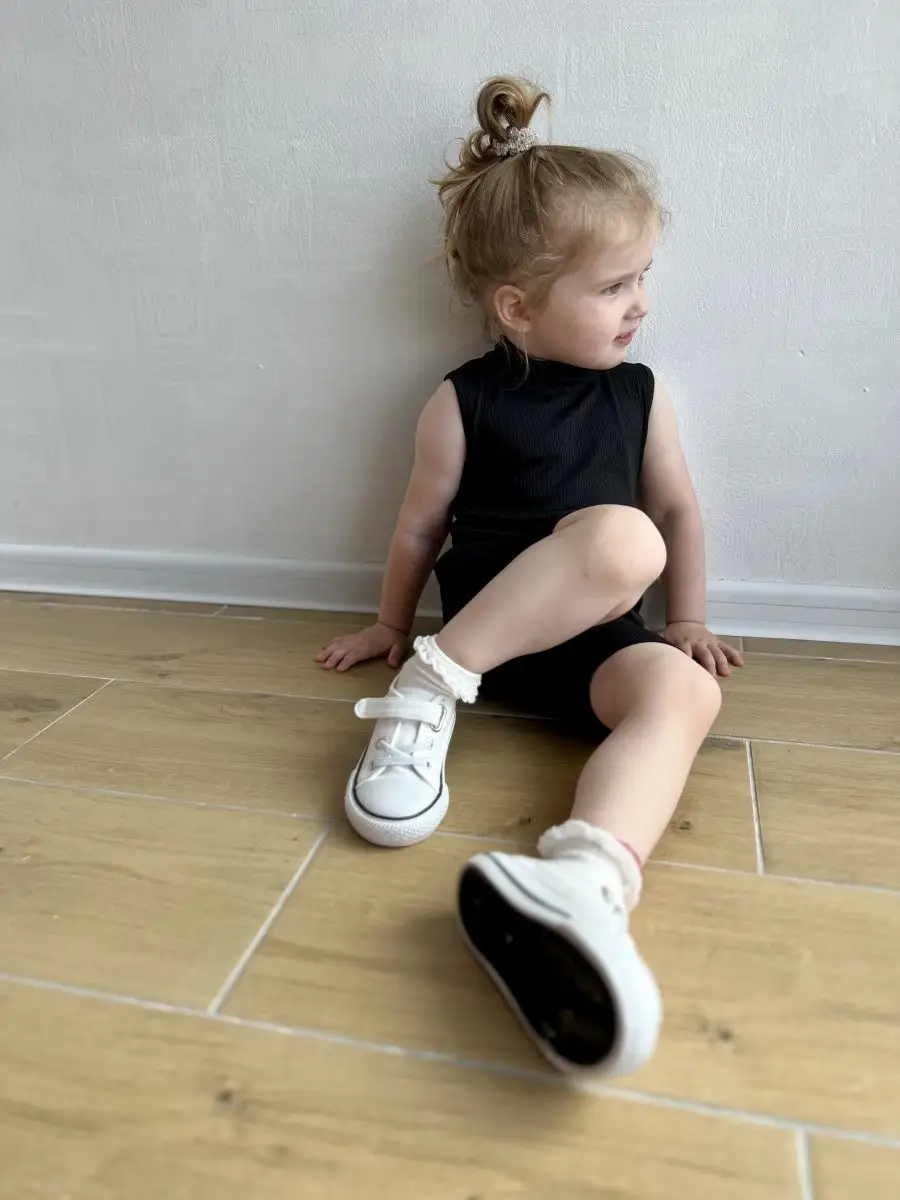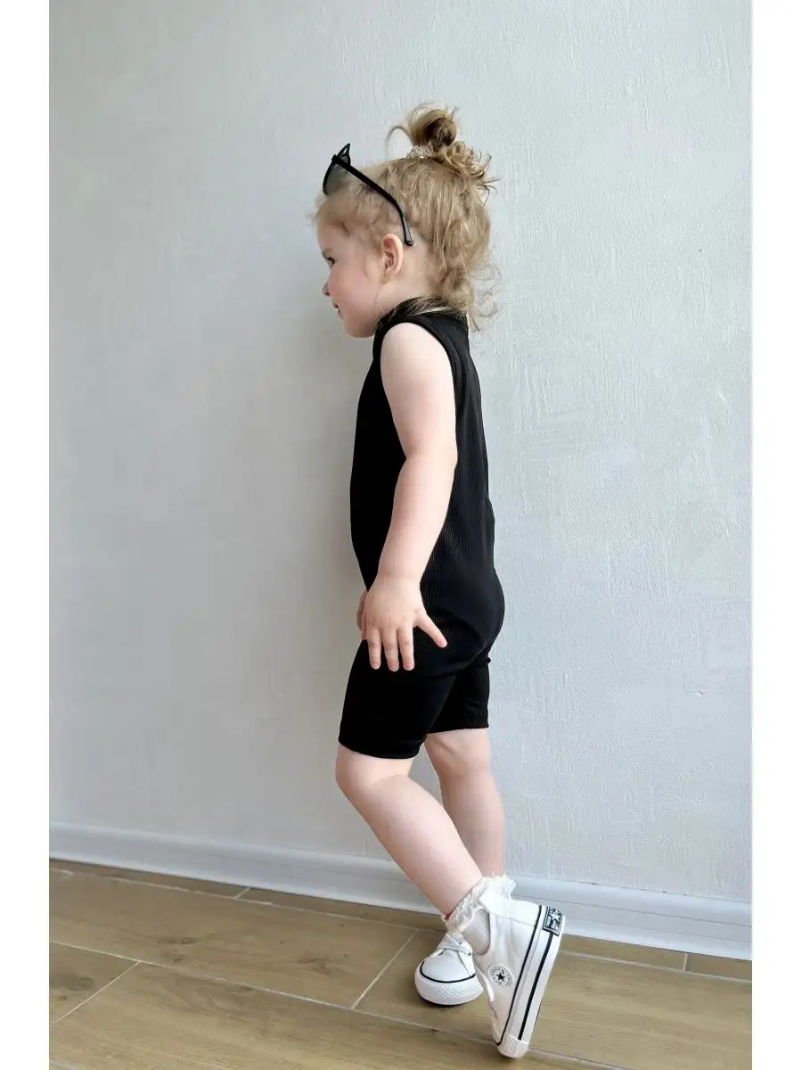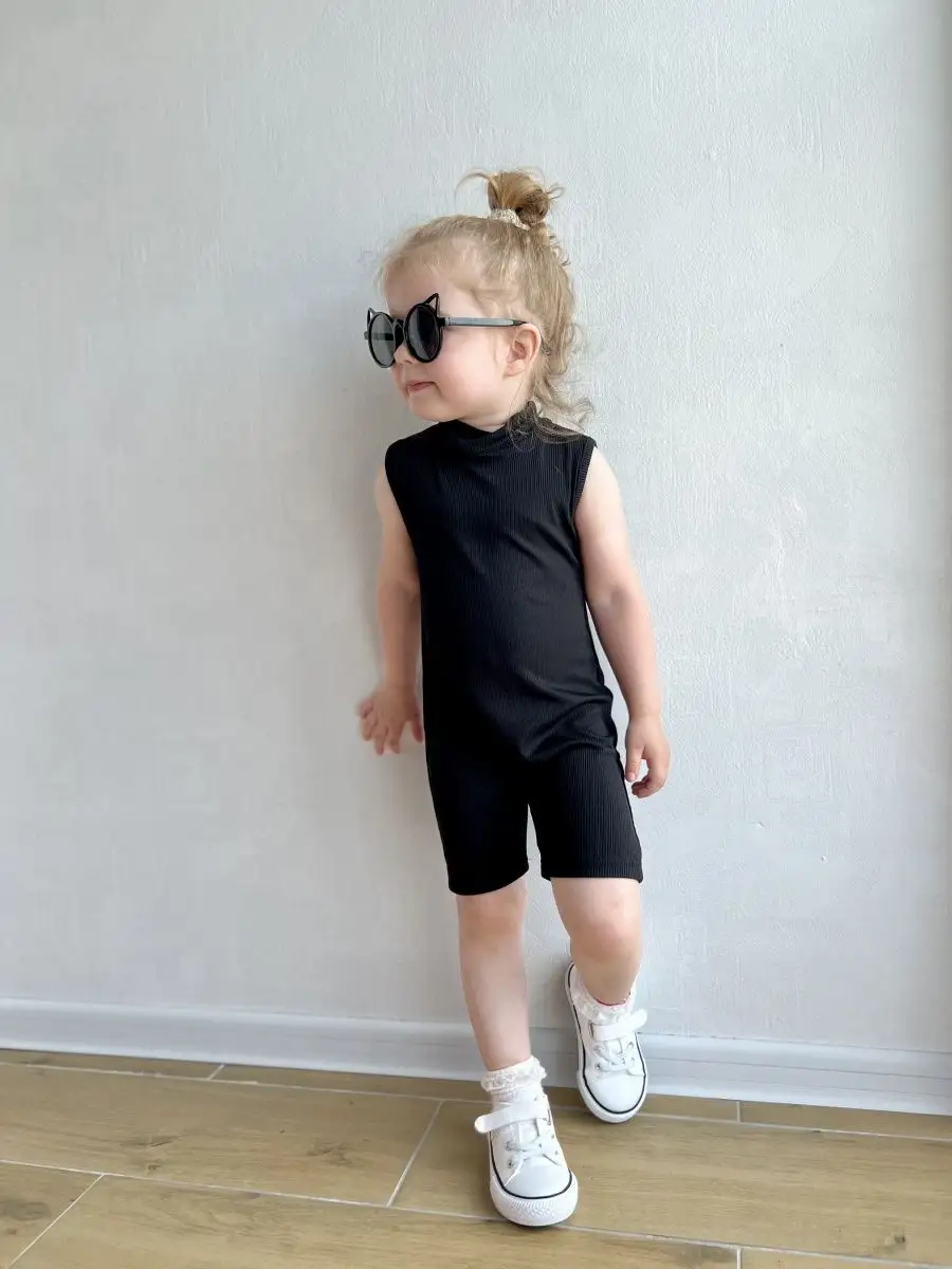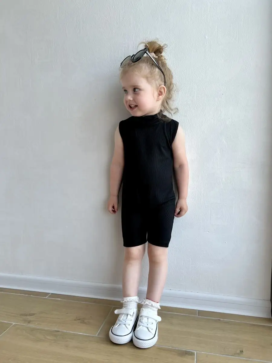 В гардеробе маленькой модницы обязательно должен быть комбинезон. Модель выполнена из дышащей ткани в рубчик, укороченные шортики-велосипедки не сковывают движений. Комбинезон без рукавов. Изюминка модели - воротник-стойка. Для удобного ношения имеется потайная молния на спинке.