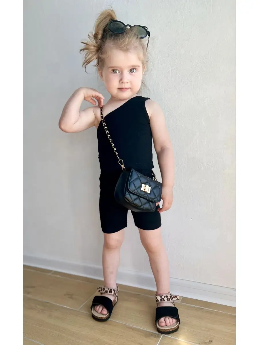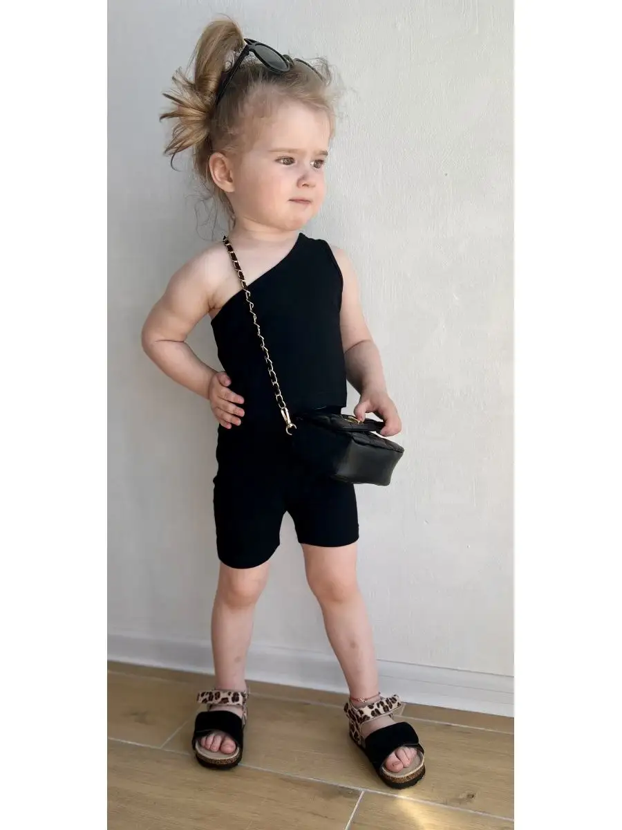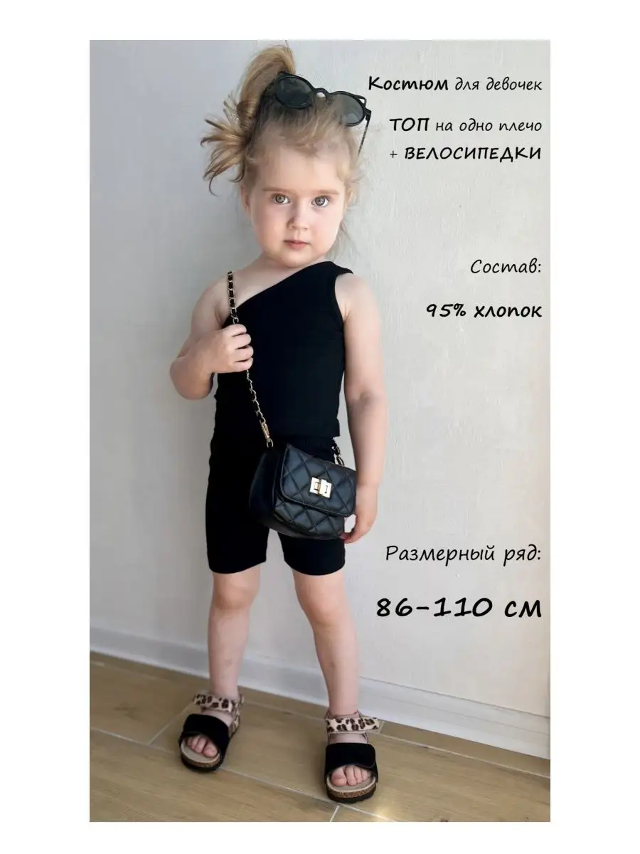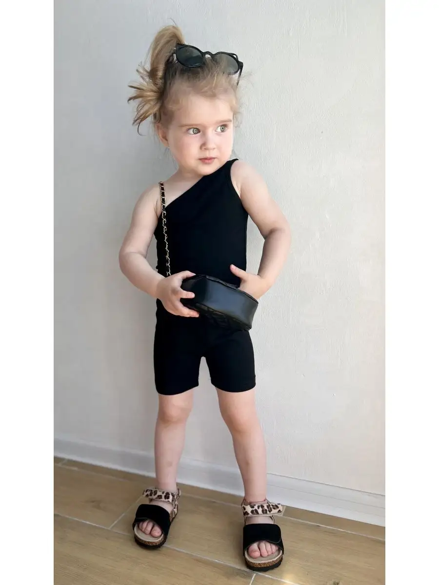 Модный костюм для девочки включает топ на одно плечо и шортики-велосипедки. Натуральный состав ткани 95 % хлопок и 5 % спандекс, подходит для нежной детской кожи и не вызывает аллергию. Шортики - велосипедки облегающие на эластичной резинке для комфортной носки. Топ майка на одно плечо. Шортики и топик можно носить отдельно сочетая с любыми предметами гардероба. Материал эластичный, тянется в меру. Стильный комплект для девочки идеально подойдет на жару/ в отпуск, детский сад, прогулку, для ежедневной носки. Дополните костюм модной маленькой сумочкой через плечо/поясной, кедами/туфельками/сандаликами/ сабо.