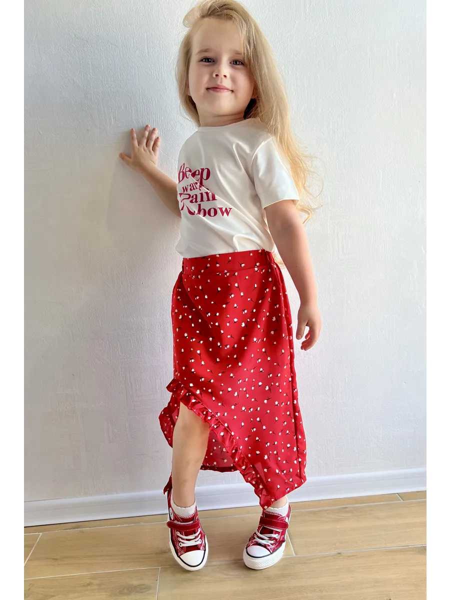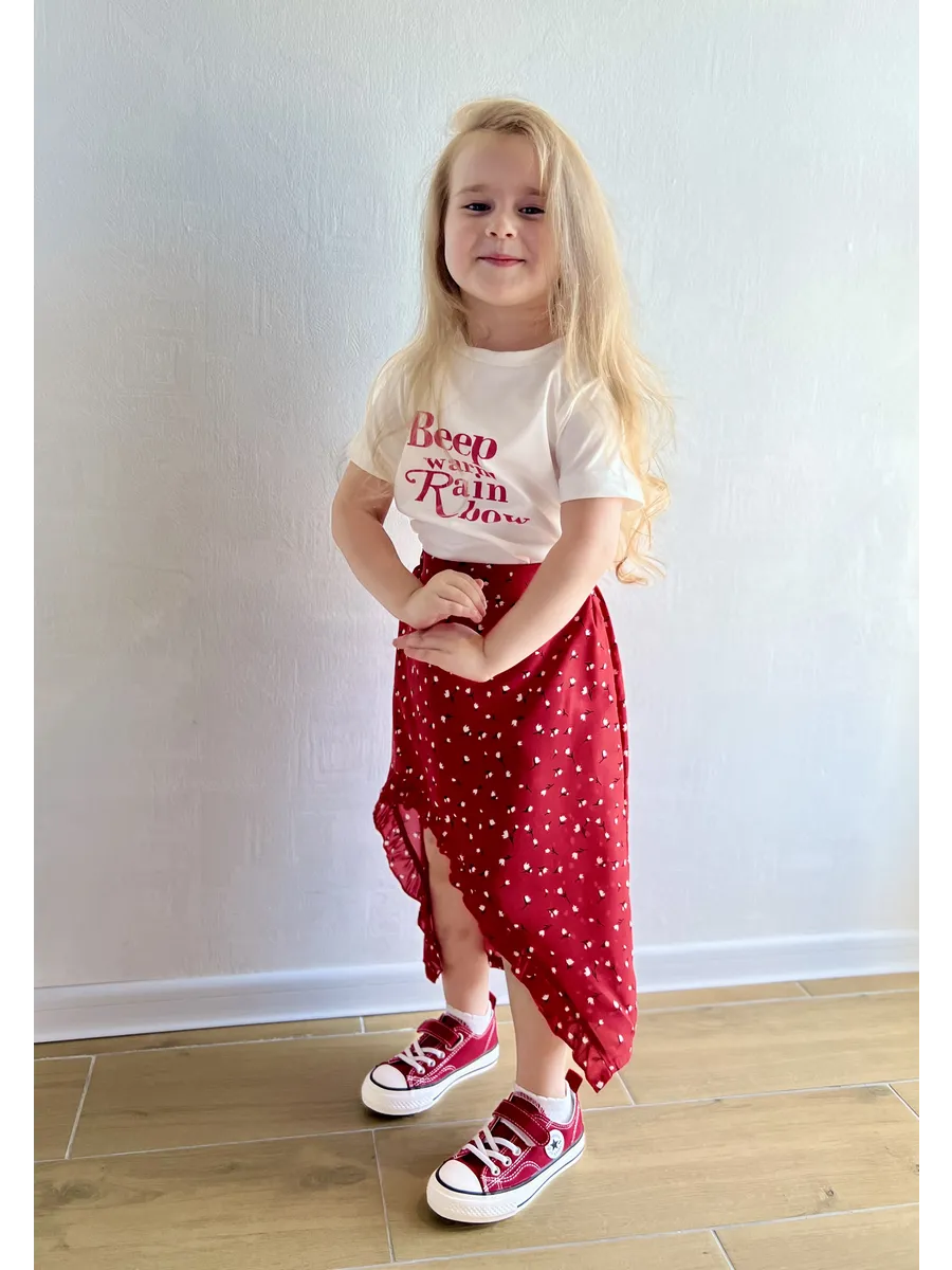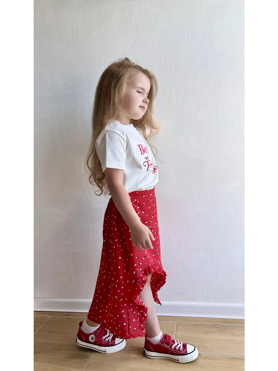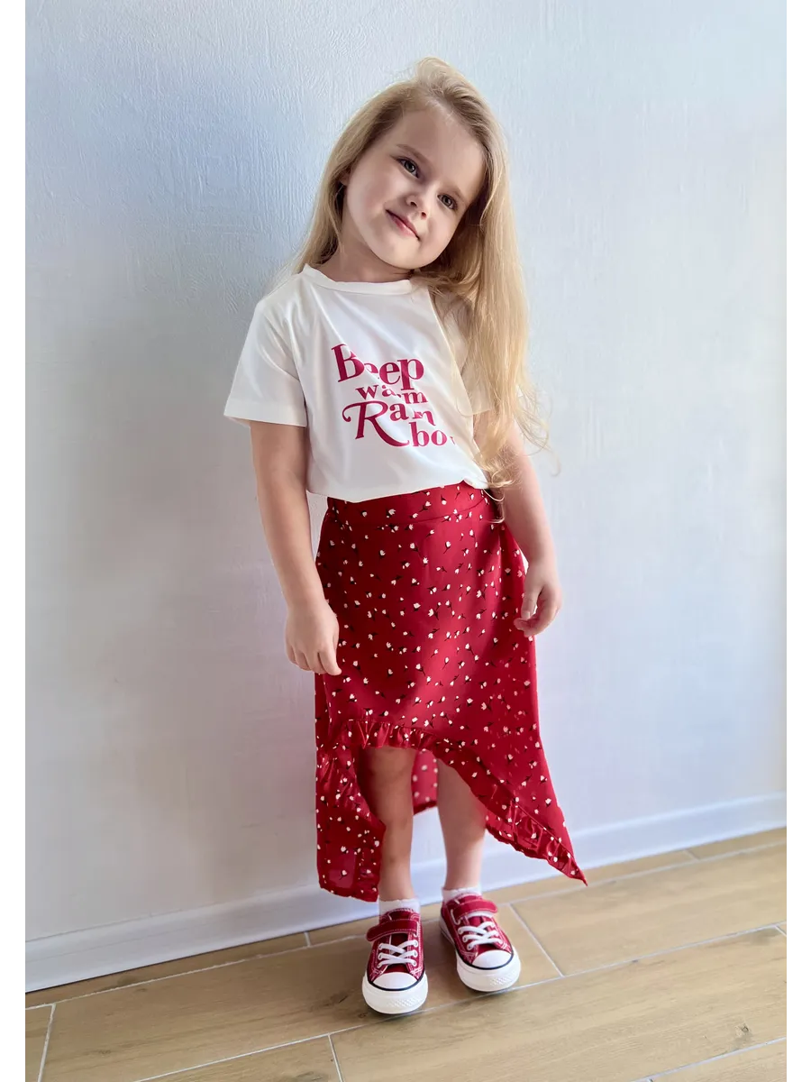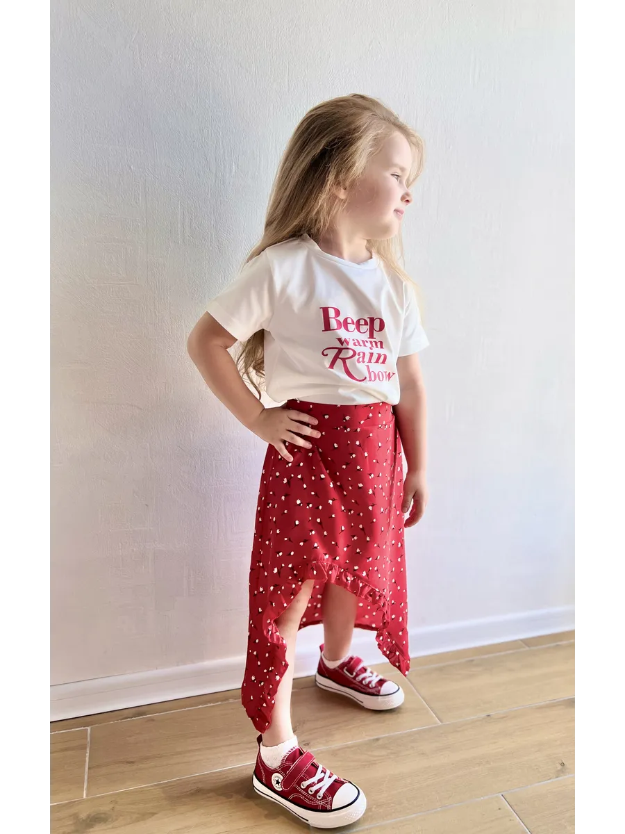 Костюм футболка с юбкой от MDSt - стильное и удобное решение для повседневных образов юных модниц. Мягкий и приятный к телу материал из полиэстера и вискозы обеспечит комфорт в течение всего дня. Юбка миди с вырезом и шортиками добавляет игривости и свободы движений, а надпись на футболке и цветочный принт на юбке создают яркий и индивидуальный образ. Этот костюм станет отличным выбором для детского сада, школы или прогулок с друзьями.