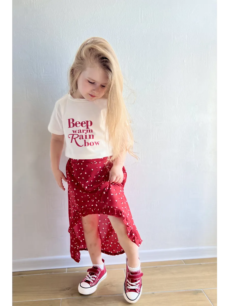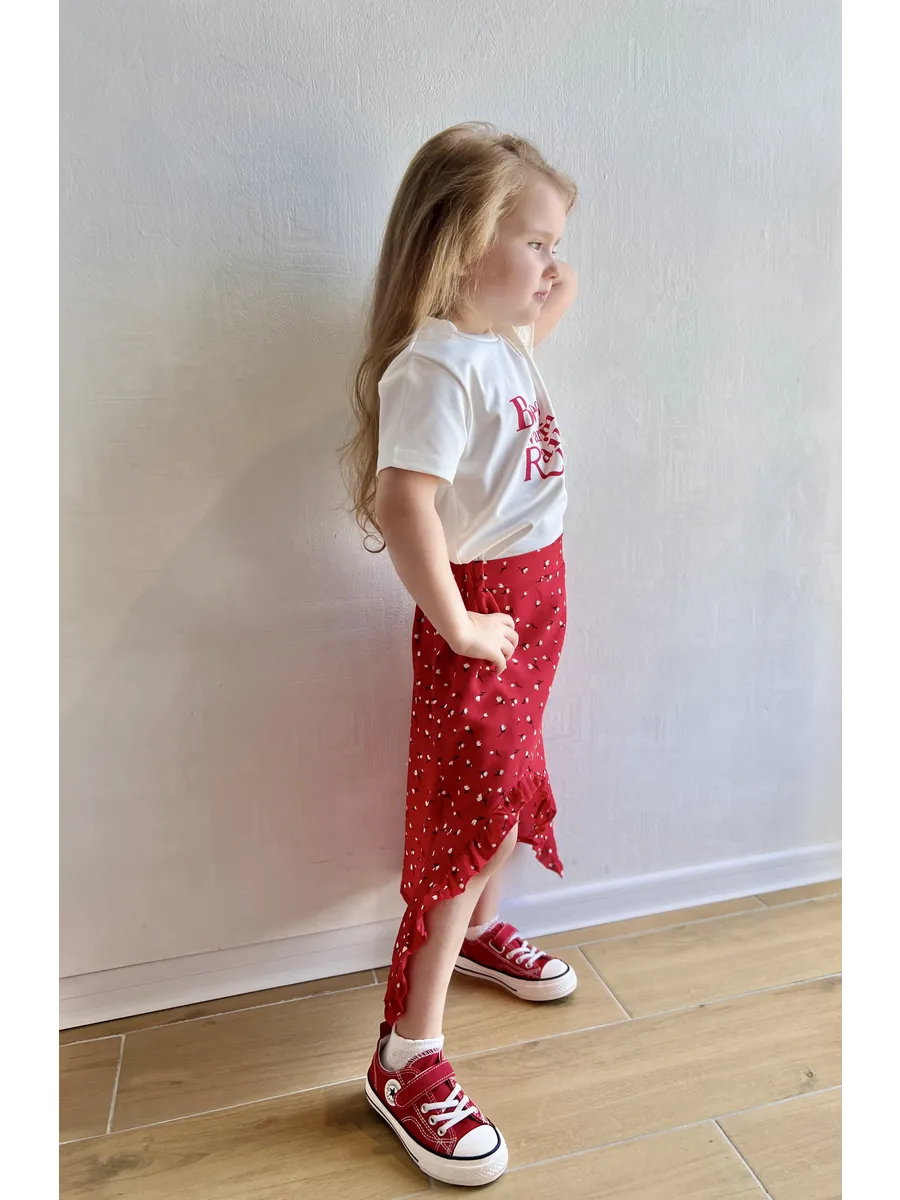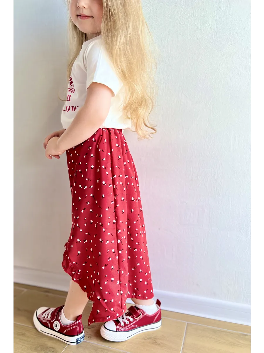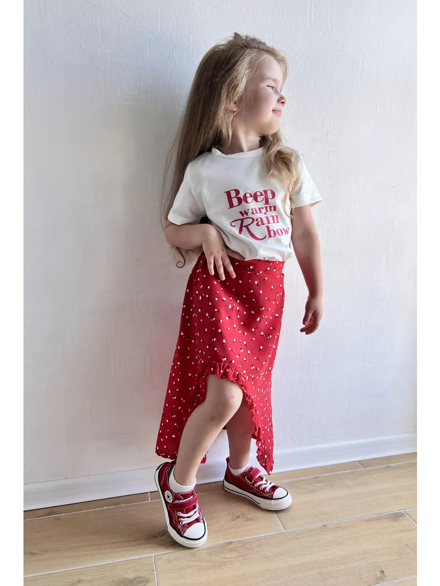 Костюм футболка с юбкой от MDSt - стильное и удобное решение для повседневных образов юных модниц. Мягкий и приятный к телу материал из полиэстера и вискозы обеспечит комфорт в течение всего дня. Юбка миди с вырезом и шортиками добавляет игривости и свободы движений, а надпись на футболке и цветочный принт на юбке создают яркий и индивидуальный образ. Этот костюм станет отличным выбором для детского сада, школы или прогулок с друзьями.