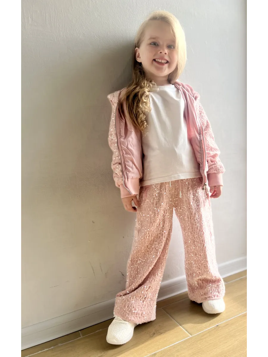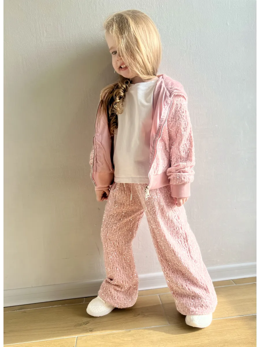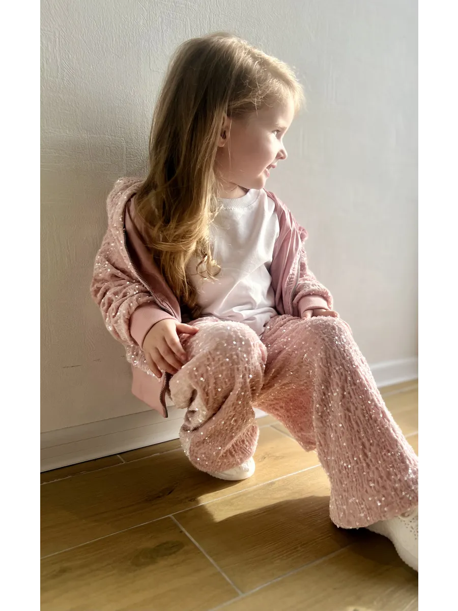 Костюм спортивный велюровый с пайетками от MDSt – это идеальный выбор для девочек, которые ценят комфорт и стиль в повседневной жизни и на спортивных мероприятиях. Костюм включает в себя брюки с прямым силуэтом и толстовку с капюшоном на молнии, украшенную изящными пайетками, что делает его отличным выбором для вечерних мероприятий или просто для повседневного ношения. Благодаря молниевой застежке, костюм легко надевать и снимать. Боковые карманы и подходящие для всех типов ростовки делают его универсальным и удобным в использовании. Этот костюм – отличный способ добавить в гардероб девочки что-то уютное и стильное, подходящее для самых разнообразных ситуаций.