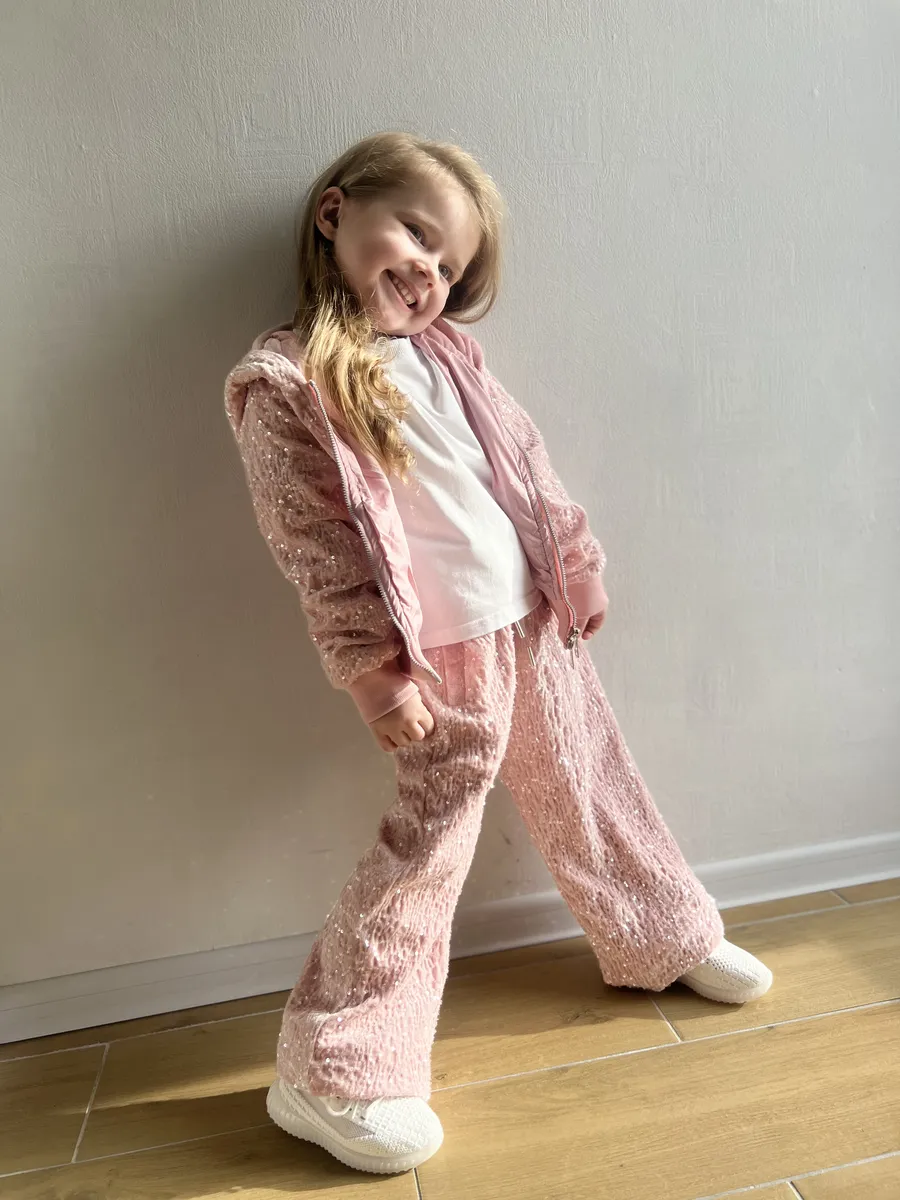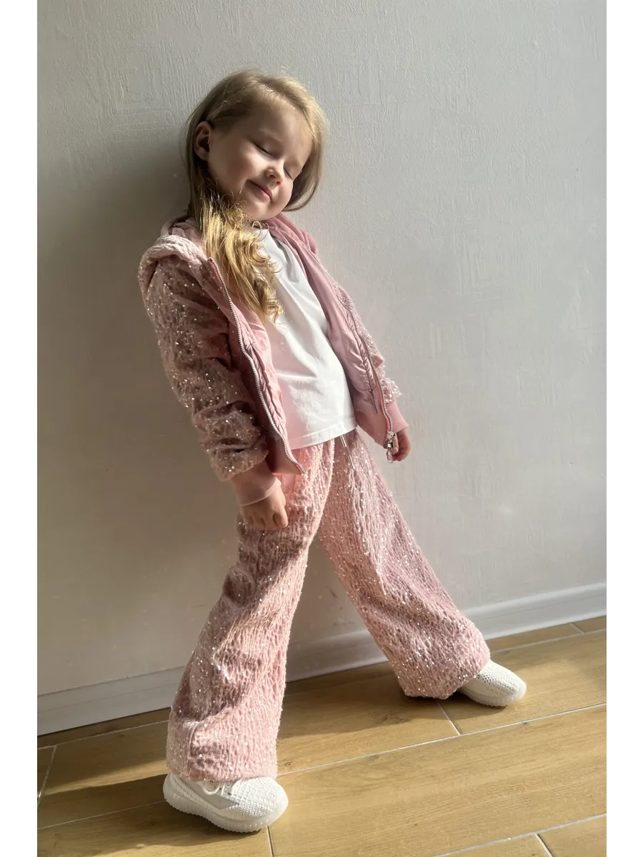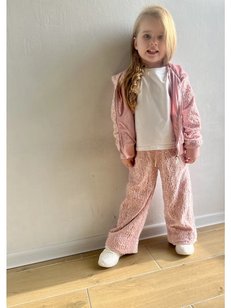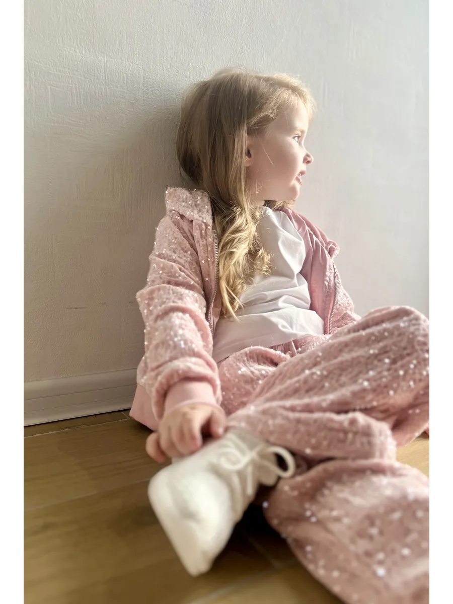 Костюм спортивный велюровый с пайетками от MDSt – это идеальный выбор для девочек, которые ценят комфорт и стиль в повседневной жизни и на спортивных мероприятиях. Костюм включает в себя брюки с прямым силуэтом и толстовку с капюшоном на молнии, украшенную изящными пайетками, что делает его отличным выбором для вечерних мероприятий или просто для повседневного ношения. Благодаря молниевой застежке, костюм легко надевать и снимать. Боковые карманы и подходящие для всех типов ростовки делают его универсальным и удобным в использовании. Этот костюм – отличный способ добавить в гардероб девочки что-то уютное и стильное, подходящее для самых разнообразных ситуаций.