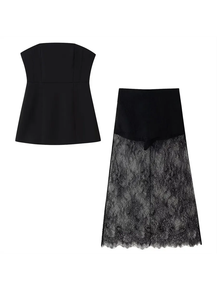 Этот стильный костюм, состоящий из топа и кружевной длинной юбкой станет идеальным выбором для любого праздничного события. Юбка макси из кружева с шортами создает элегантный и женственный образ, а удлиненный топ-бандо с открытыми плечами добавляет пикантности. Костюм выполнен из полиэстера и не имеет подкладки, что делает его легким и приятным к телу. Благодаря универсальному черному цвету, этот наряд подойдет для различных торжественных случаев, от вечеринок до Нового года.