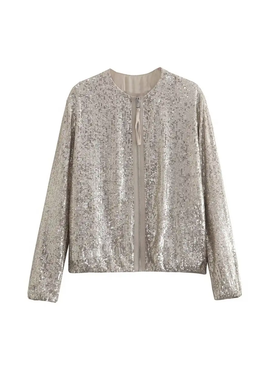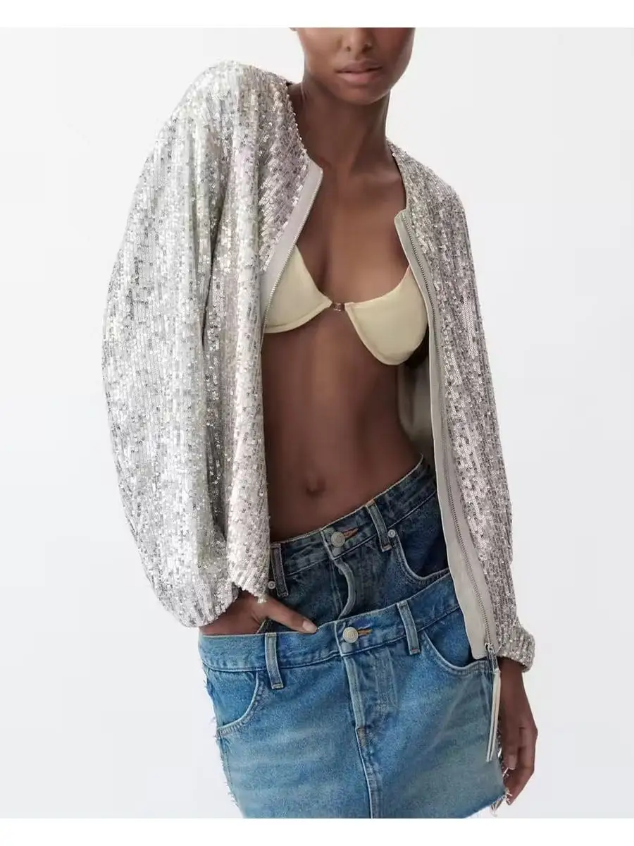 Блестящая летняя куртка-бомбер женская.