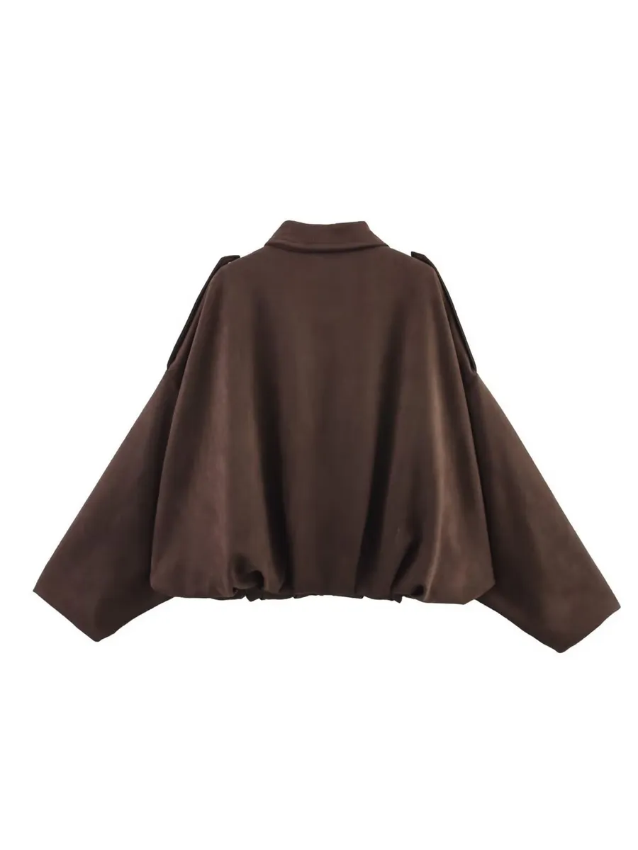 Стильная куртка-бомбер оверсайз от TYAPTUP станет незаменимым элементом вашего осеннего гардероба. Модель выполнена из мягкого, ворсистого полиэстера приятного каштанового цвета и отличается свободным, комфортным покроем. Оригинальный крой с рукавами "летучая мышь" придает куртке современный и дерзкий вид. Застежка на кнопки и молнию обеспечивает удобство и надежную фиксацию. Куртка-бомбер TYAPTUP - это идеальный выбор для создания стильных и комфортных образов на каждый день.