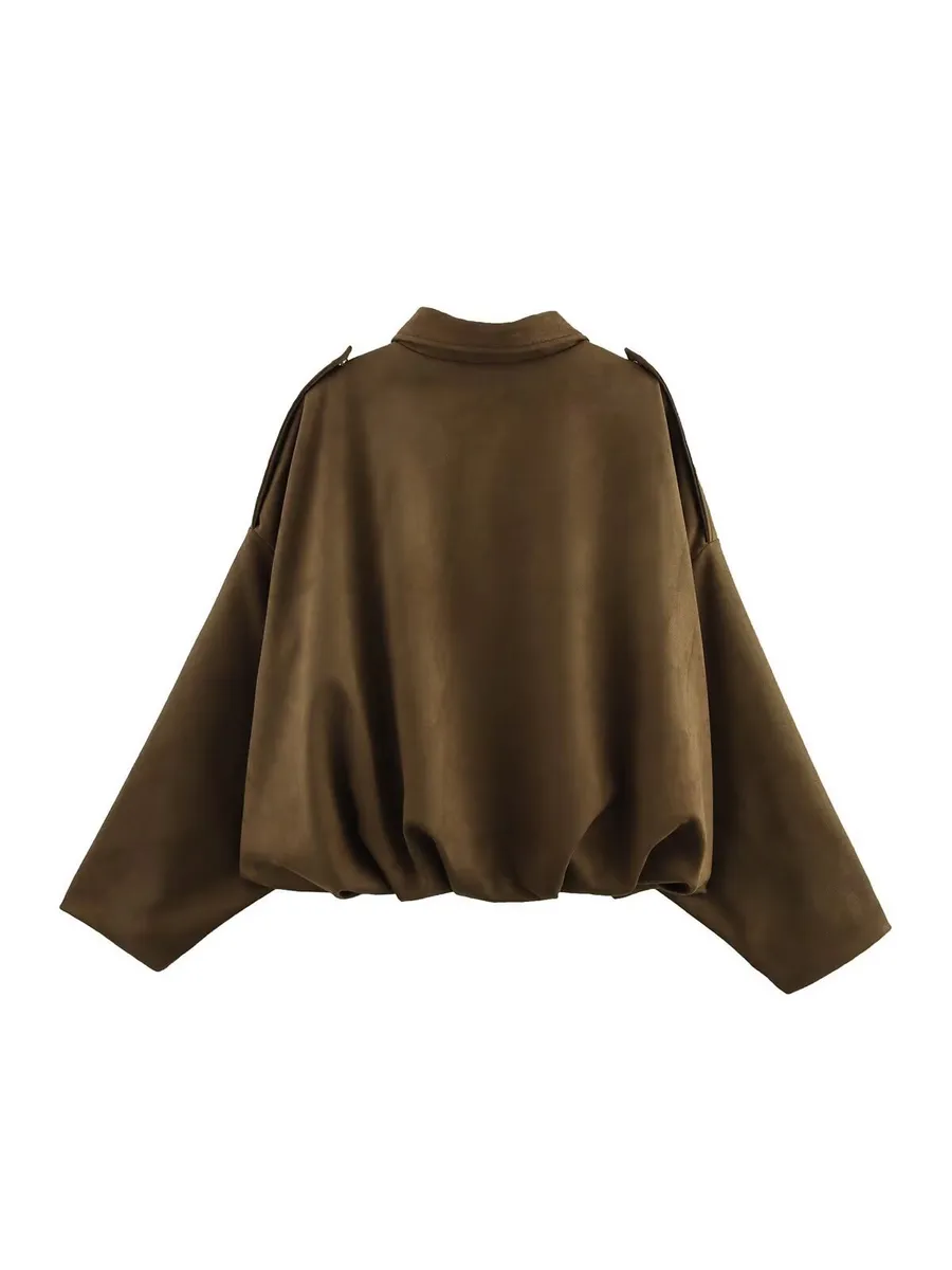 Стильная куртка-бомбер оверсайз от TYAPTUP станет незаменимым элементом вашего осеннего гардероба. Модель выполнена из мягкого, ворсистого полиэстера приятного коричневого цвета и отличается свободным, комфортным покроем. Оригинальный крой с рукавами "летучая мышь" придает куртке современный и дерзкий вид. Застежка на кнопки и молнию обеспечивает удобство и надежную фиксацию. Куртка-бомбер TYAPTUP - это идеальный выбор для создания стильных и комфортных образов на каждый день.