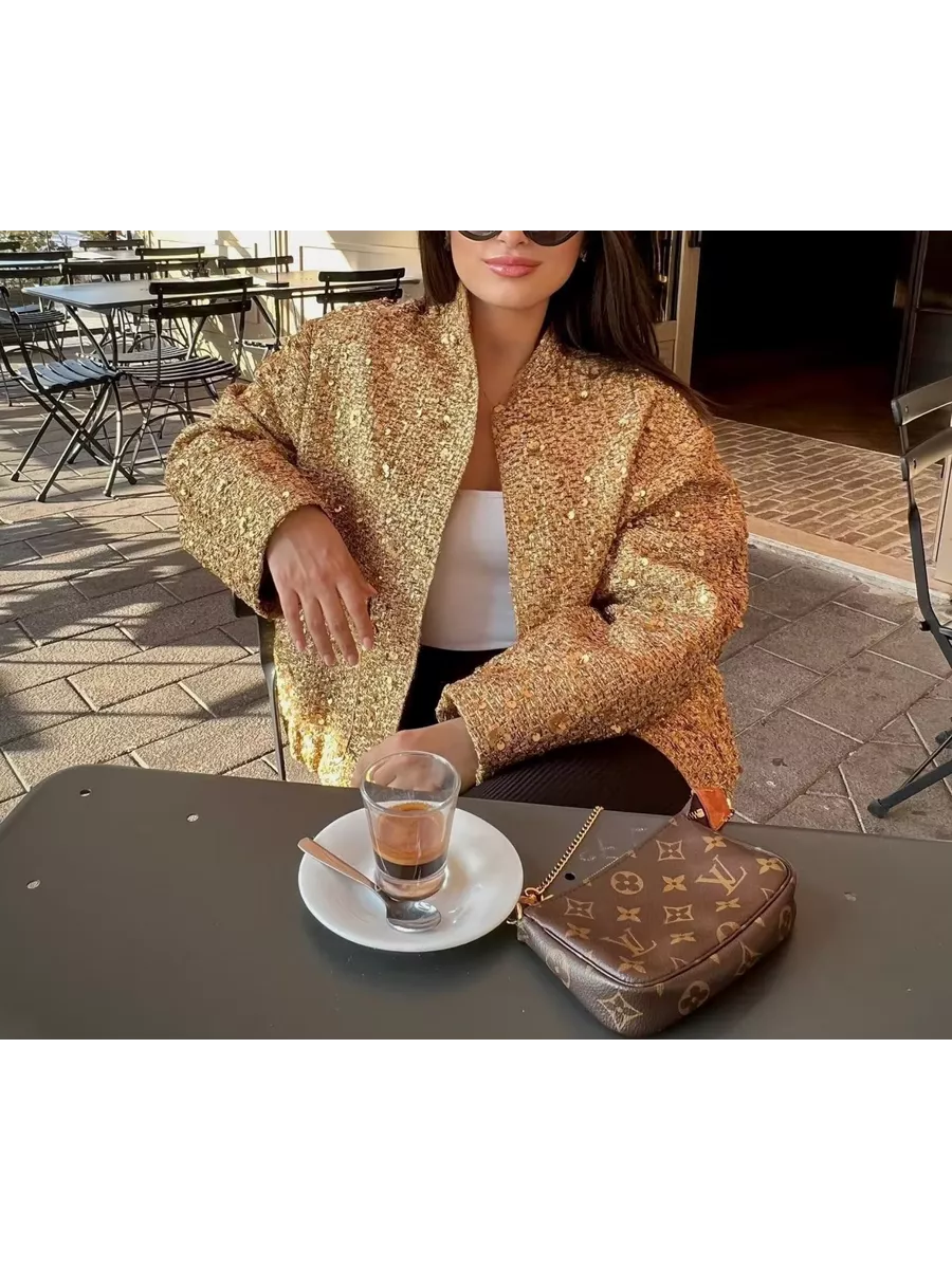 Золотистая ветровка - бомбер станет украшением Вашего гардероба как на каждый день, так и на любой особый случай.