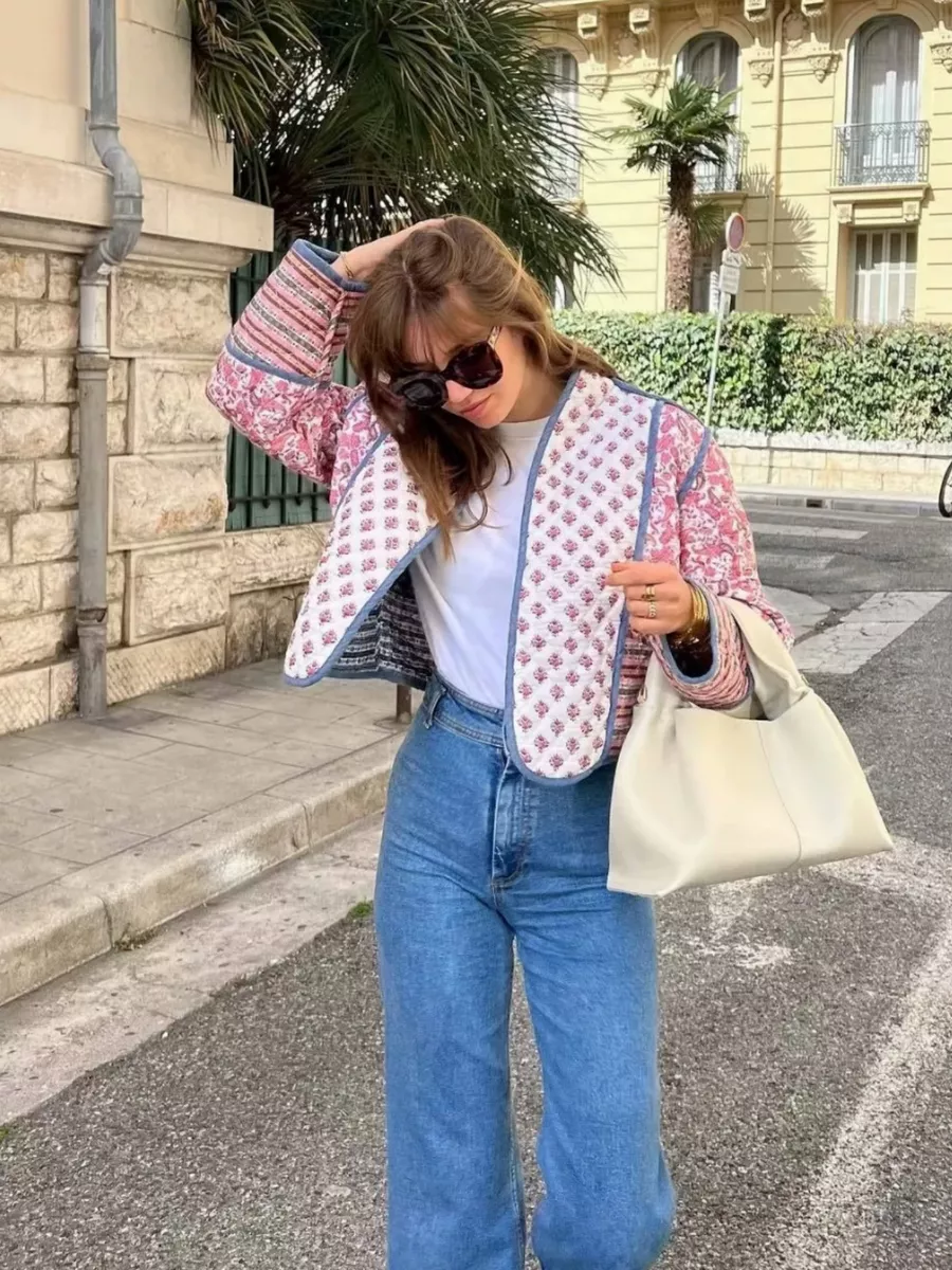 Куртка стеганая двухсторонняя с цветочным принтом - тренд 2024 года.