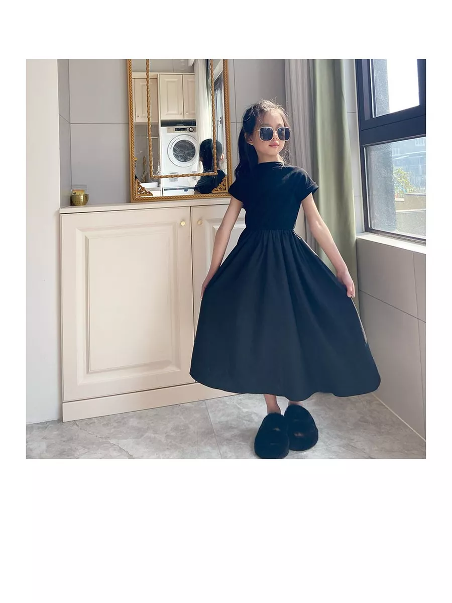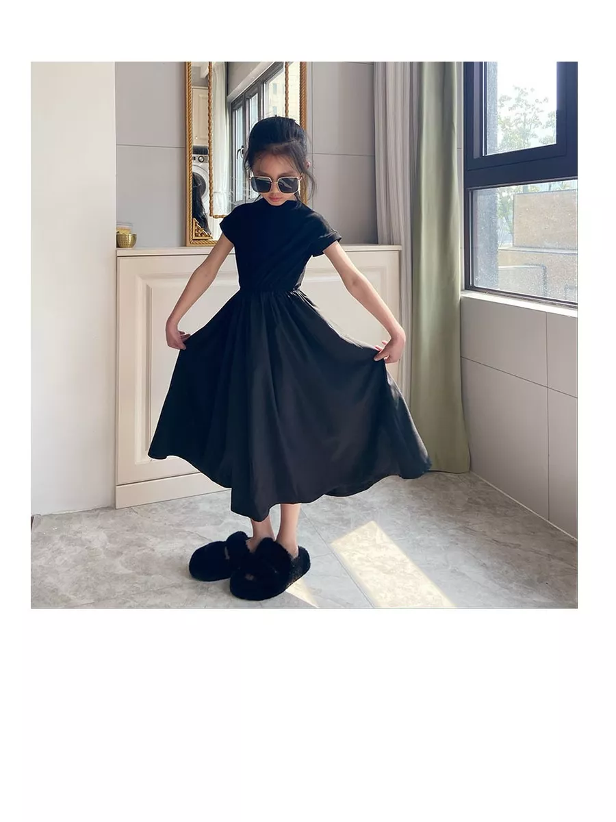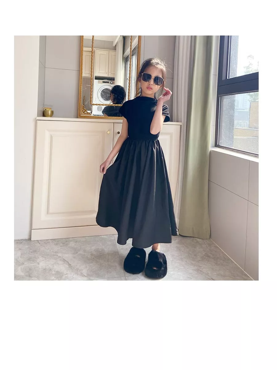 Платье черное макси для девочек. Стильное и универсальное платье для девочек прекрасно впишется в молодежный стиль. Рукав - длинный. Без застежки. Однотонное и нарядное платье для девочки идеально подойдет как школьная форма или повседневное платье.