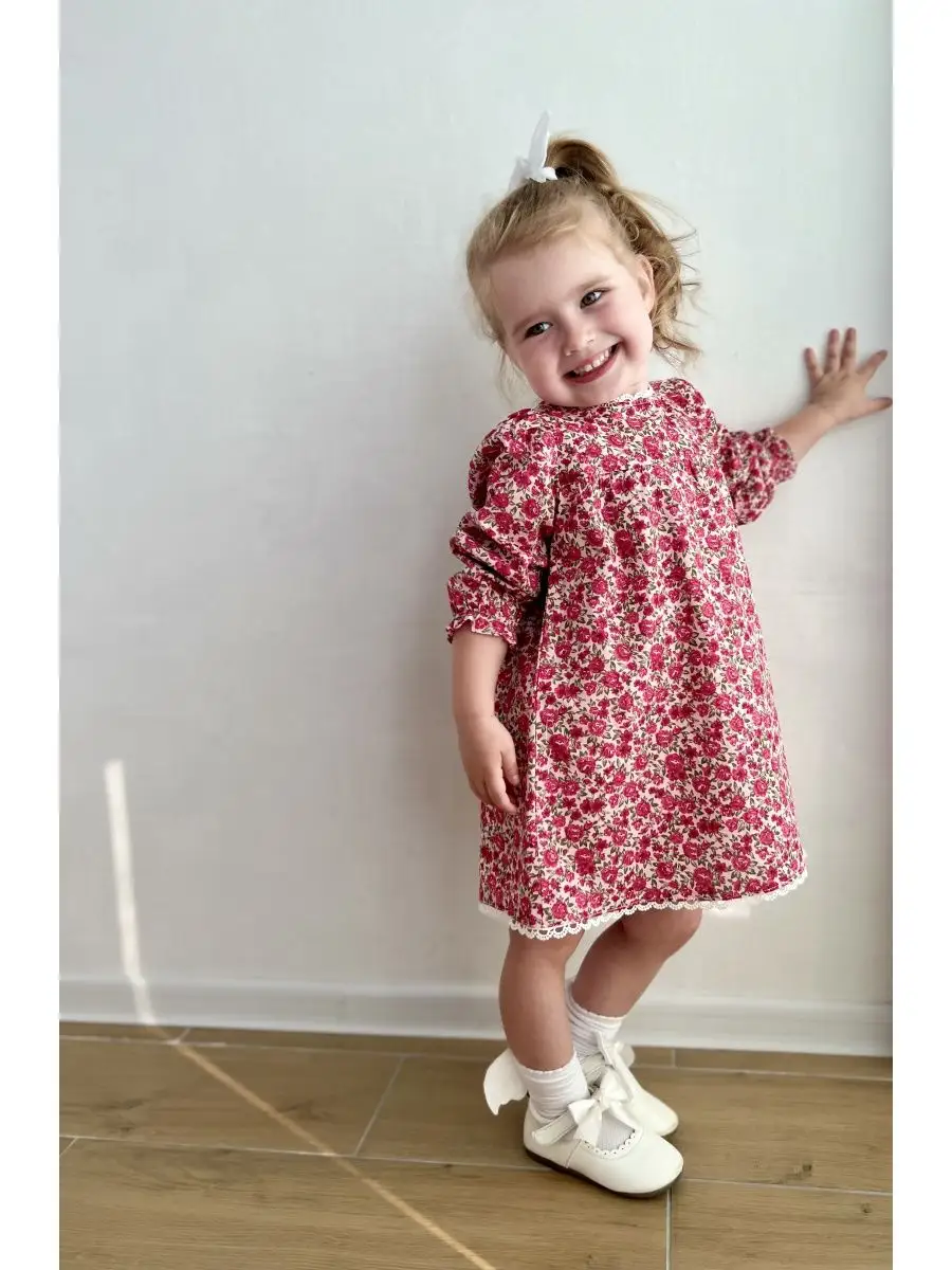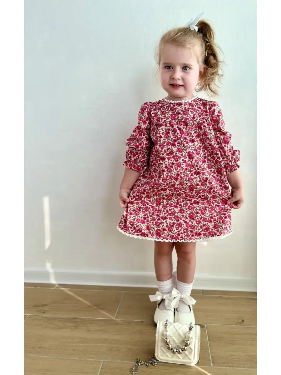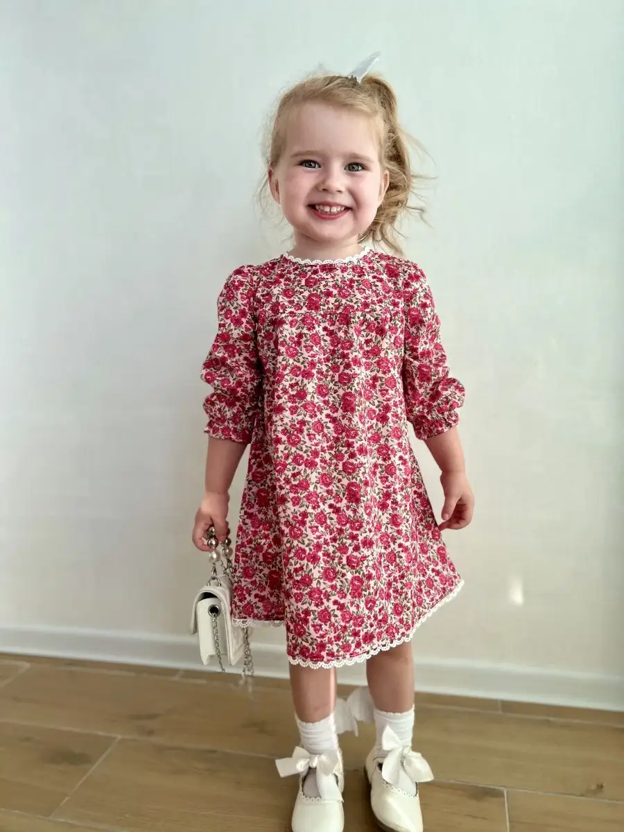 Модное и яркое платье для девочек с отделкой кружевом, легкое, нежное, и очень комфортное. Платье летнее из тонкого 100% хлопка, идеально на жаркую погоду. Платье не сковывает движений, а натуральный хлопок позволяет коже дышать, подходит для деток с чувствительной кожей. Платье отлично подойдет для торжества/утренника/ садика/ на каждый день/ прогулок. Платье с принтом цветочки очень яркое и поможет создать милый образ на каждый день. Оно легко сочетается с джинсовыми куртками и вязанными кардиганами, собрать полный образ можно по артикулам на фото. Дополните образ изящными туфельками, сандаликами, балетками или кедами, в зависимости от настроения. Платье повседневное с длинным рукавом на резиночке, позволяющая регулировать длину. Подол и воротничок отделаны кружевом. Вид застежки - молния на спине.