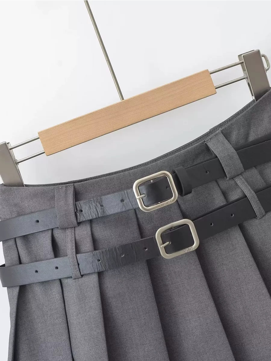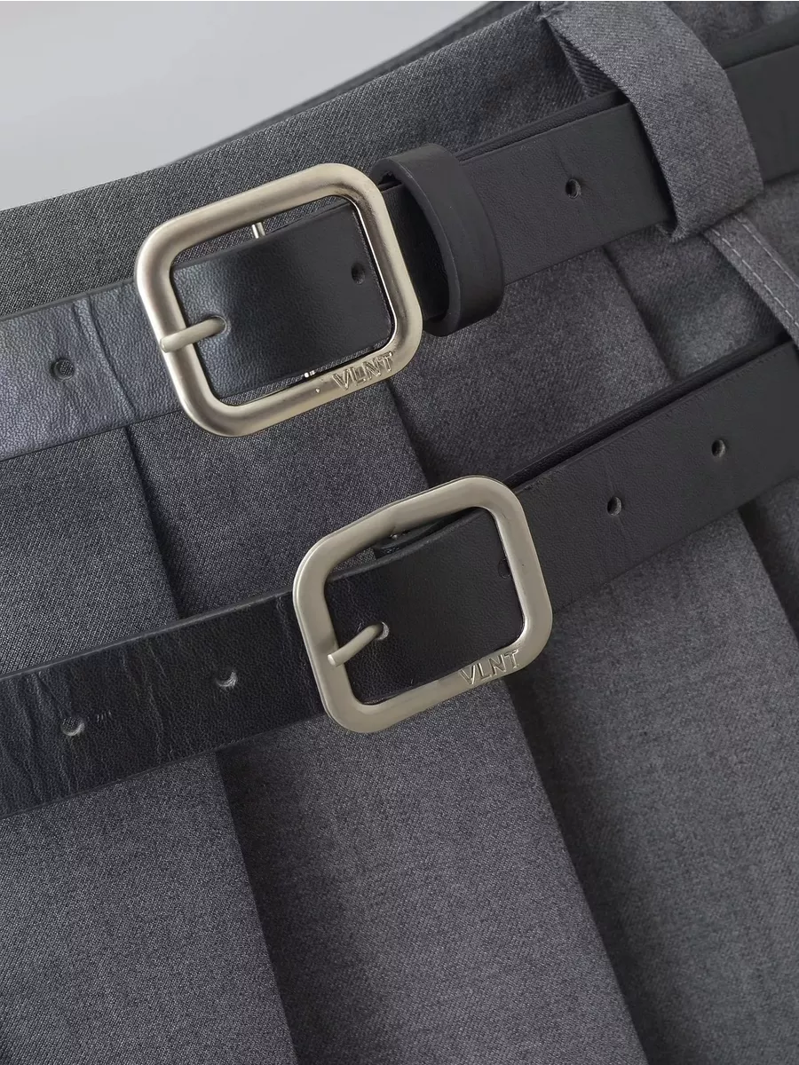 Юбка трапециевидного кроя выполнена из легкой костюмной ткани. В комплекте идут 2 ремня из гладкой искусственной экокожи с металлической квадратной пряжкой в комплекте. Низкая посадка, подчеркивающая фигуру. Застежка на молнию сбоку. Короткая юбка А-силуэта с плиссировкой. Юбка выполнена из тонкой костюмной ткани, в ней не будет жарко даже в знойную летнюю жару. Юбка держит форму, внутри вшиты потайные мини-шортики в цвет, что делает юбку более комфортной в носке. Мини-юбка в складку для милых и женственных луков с блузками или рубашками в школу, университет, офис или просто на каждый день - дополни свой образ стильным оверсайз-пиджаком, укороченным пиджаком или жилетом. Короткая юбка-трапеция, которая идеально сочетается как с однотонными лонгсливами и водолазками, так и с яркими свитерами и толстовками.Сочетай ее также со своими любимыми топами, футболками или рубашками и создавай расслабленные повседневные кэжуал-аутфиты, которые подчеркнут твою фигуру и в которых ты гарантированно не останешься без внимания.
