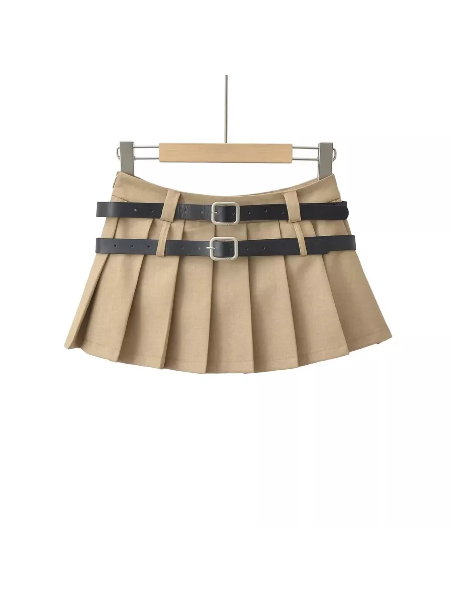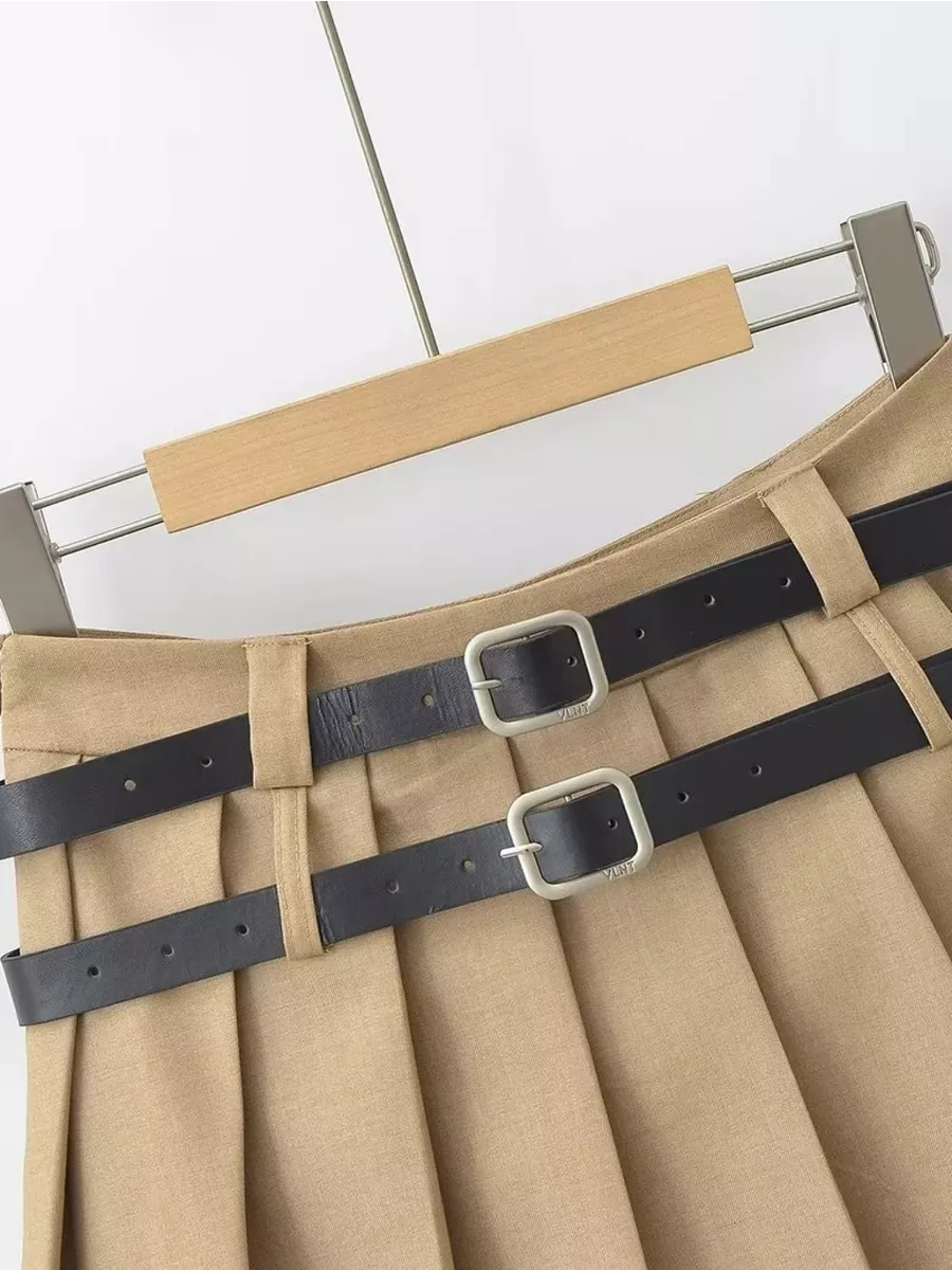 Юбка трапециевидного кроя выполнена из легкой костюмной ткани. В комплекте идут 2 ремня из гладкой искусственной экокожи с металлической квадратной пряжкой в комплекте. Низкая посадка, подчеркивающая фигуру. Застежка на молнию сбоку. Короткая юбка А-силуэта с плиссировкой. Юбка выполнена из тонкой костюмной ткани, в ней не будет жарко даже в знойную летнюю жару. Юбка держит форму, внутри вшиты потайные мини-шортики в цвет, что делает юбку более комфортной в носке. Мини-юбка в складку для милых и женственных луков с блузками или рубашками в школу, университет, офис или просто на каждый день - дополни свой образ стильным оверсайз-пиджаком, укороченным пиджаком или жилетом. Короткая юбка-трапеция, которая идеально сочетается как с однотонными лонгсливами и водолазками, так и с яркими свитерами и толстовками.Сочетай ее также со своими любимыми топами, футболками или рубашками и создавай расслабленные повседневные кэжуал-аутфиты, которые подчеркнут твою фигуру и в которых ты гарантированно не останешься без внимания.