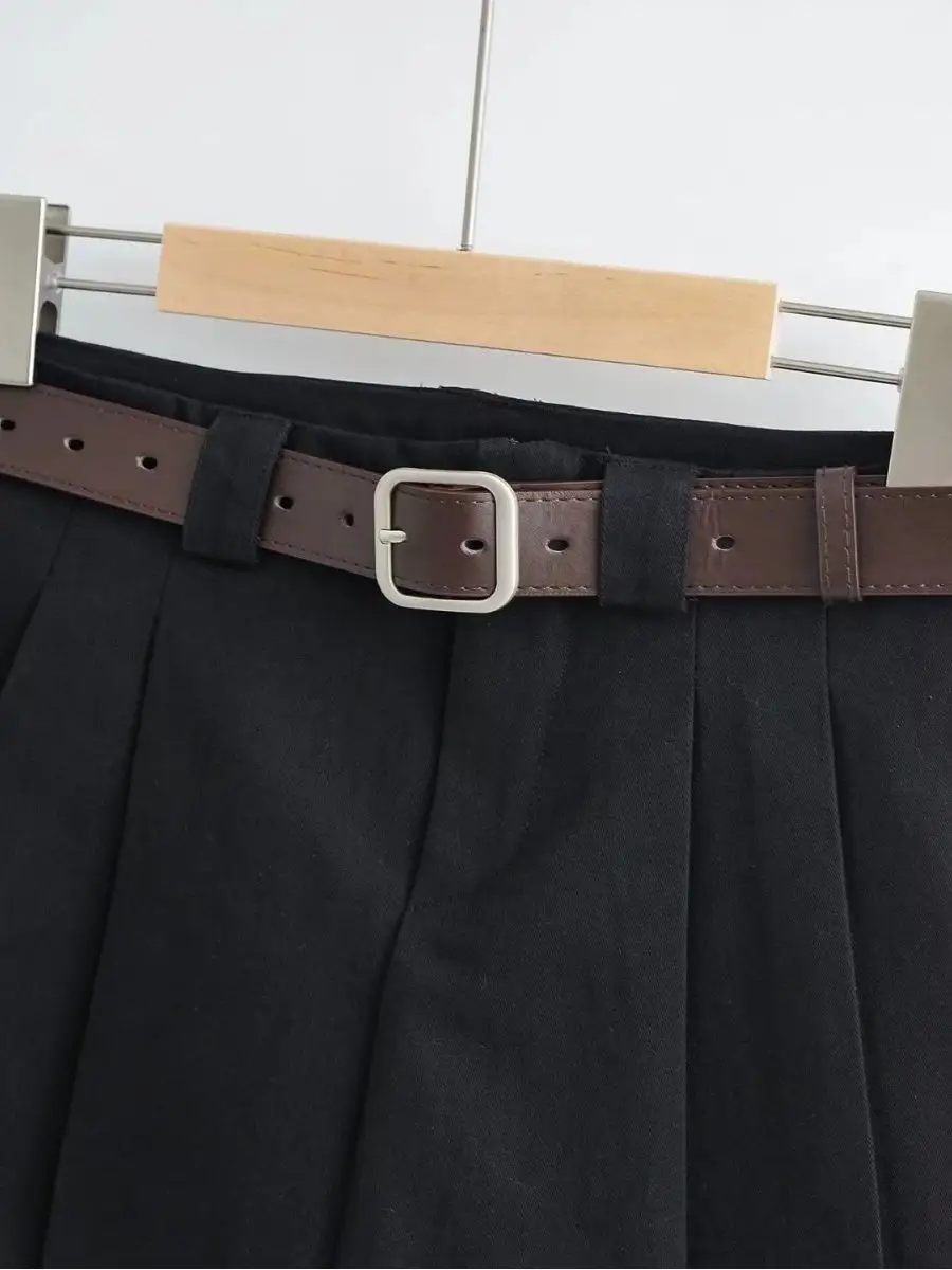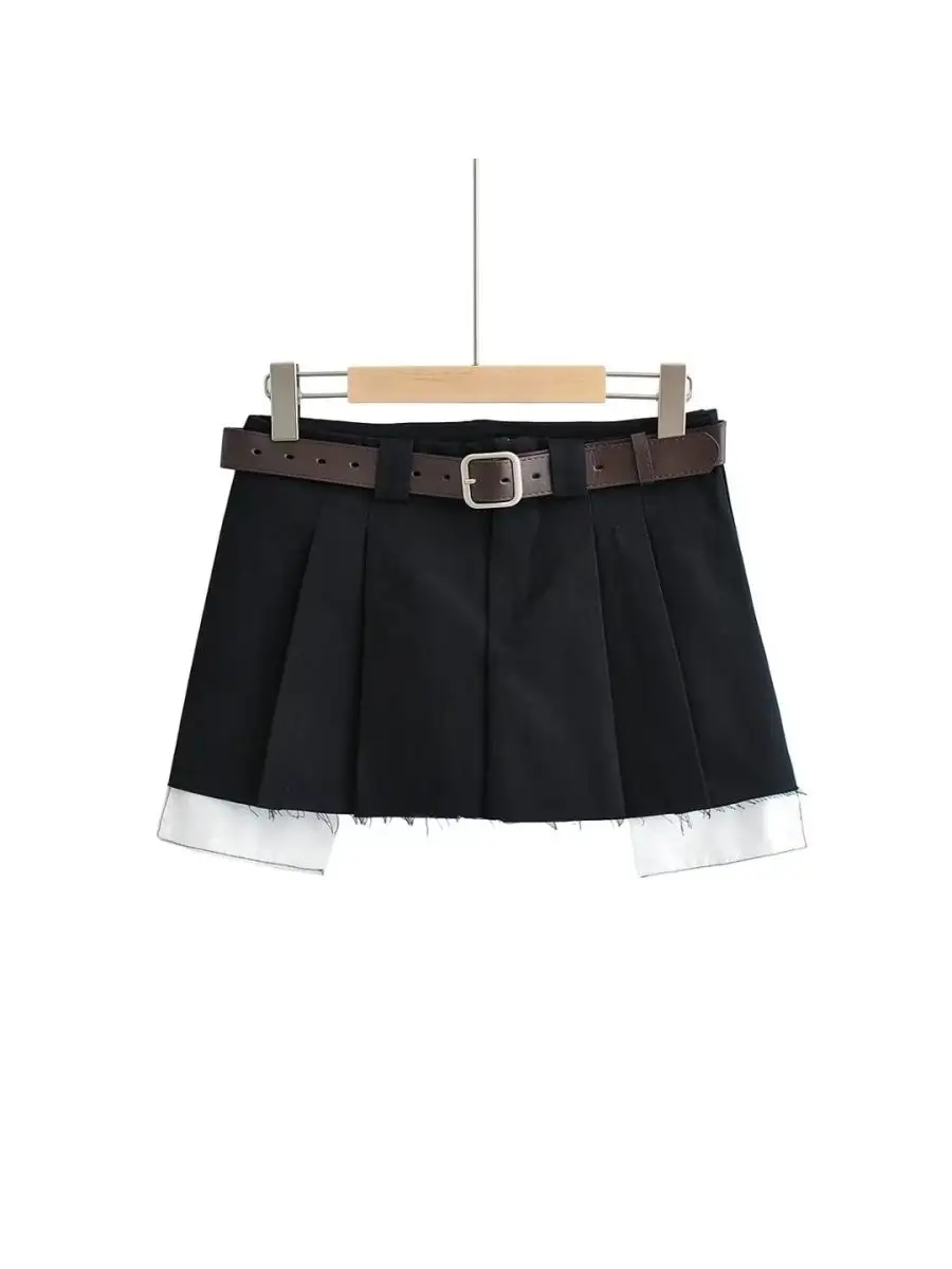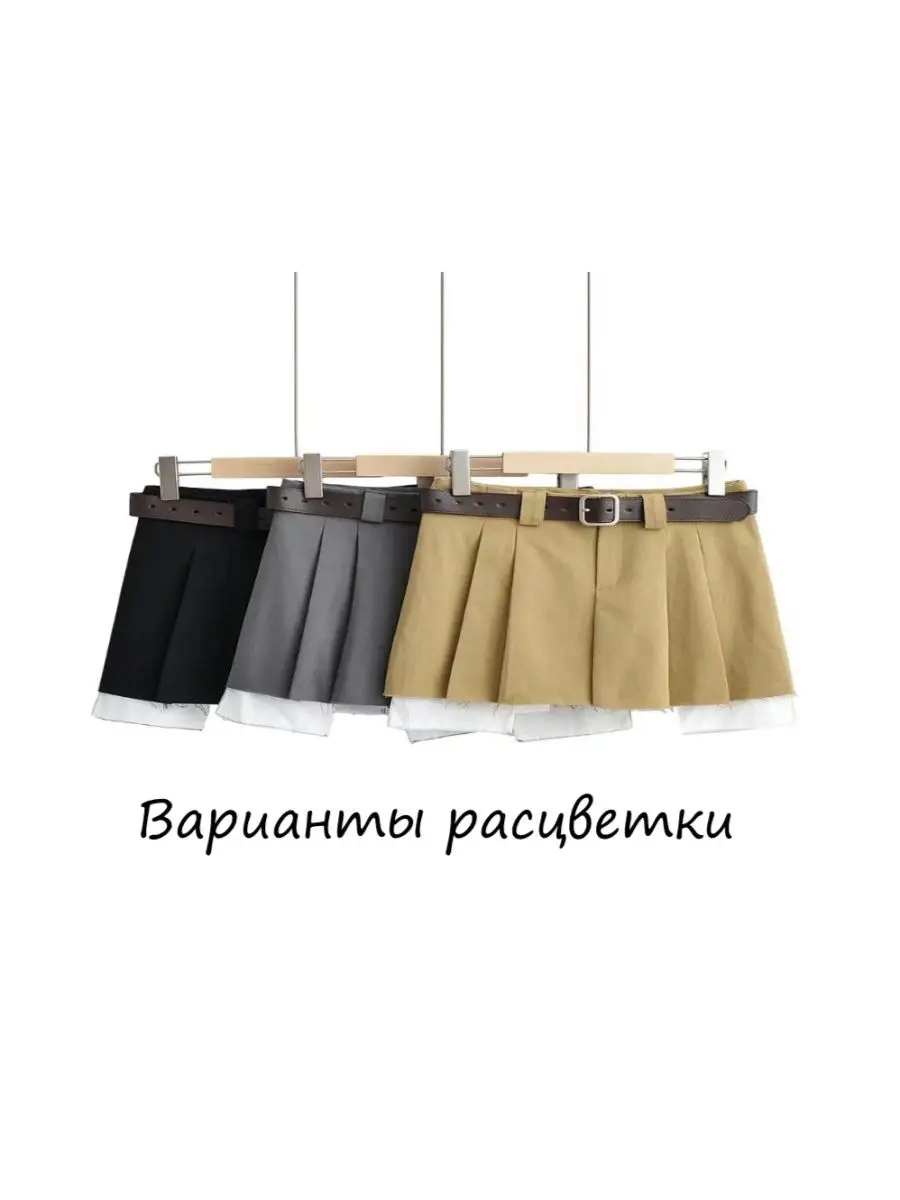 Юбка трапециевидного кроя выполнена из легкой джинсовой ткани. В комплекте идет ремень из гладкой искусственной экокожи с металлической квадратной пряжкой в комплекте. Низкая посадка, подчеркивающая фигуру. Застежка на молнию. Короткая юбка А-силуэта с крупной плиссировкой, с декоративными контрастными белыми карманами выглядывающими из- под юбки. Юбка представлена в трех самых актуальных цветах: графит, черный, сафари/бежевый. Юбка выполнена из тонкого джинса, в ней не будет жарко даже в знойную летнюю жару. Юбка держит форму, внутри вшиты потайные белые хлопковые мини-шортики, что делает юбку более комфортной в носке. Мини-юбка в крупную складку для милых и женственных луков с блузками или рубашками в школу, университет, офис или просто на каждый день - дополни свой образ стильным оверсайз-пиджаком, укороченным пиджаком или жилетом. Короткая юбка-трапеция, которая идеально сочетается как с однотонными лонгсливами и водолазками, так и с яркими свитерами и толстовками.Сочетай ее также со своими любимыми топами, футболками или рубашками и создавай расслабленные повседневные кэжуал-аутфиты, которые подчеркнут твою фигуру и в которых ты гарантированно не останешься без внимания.