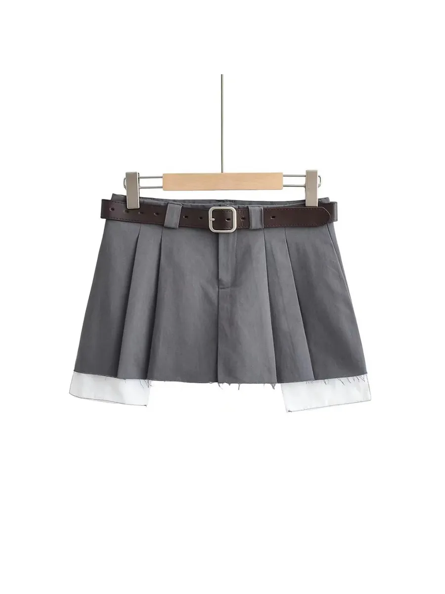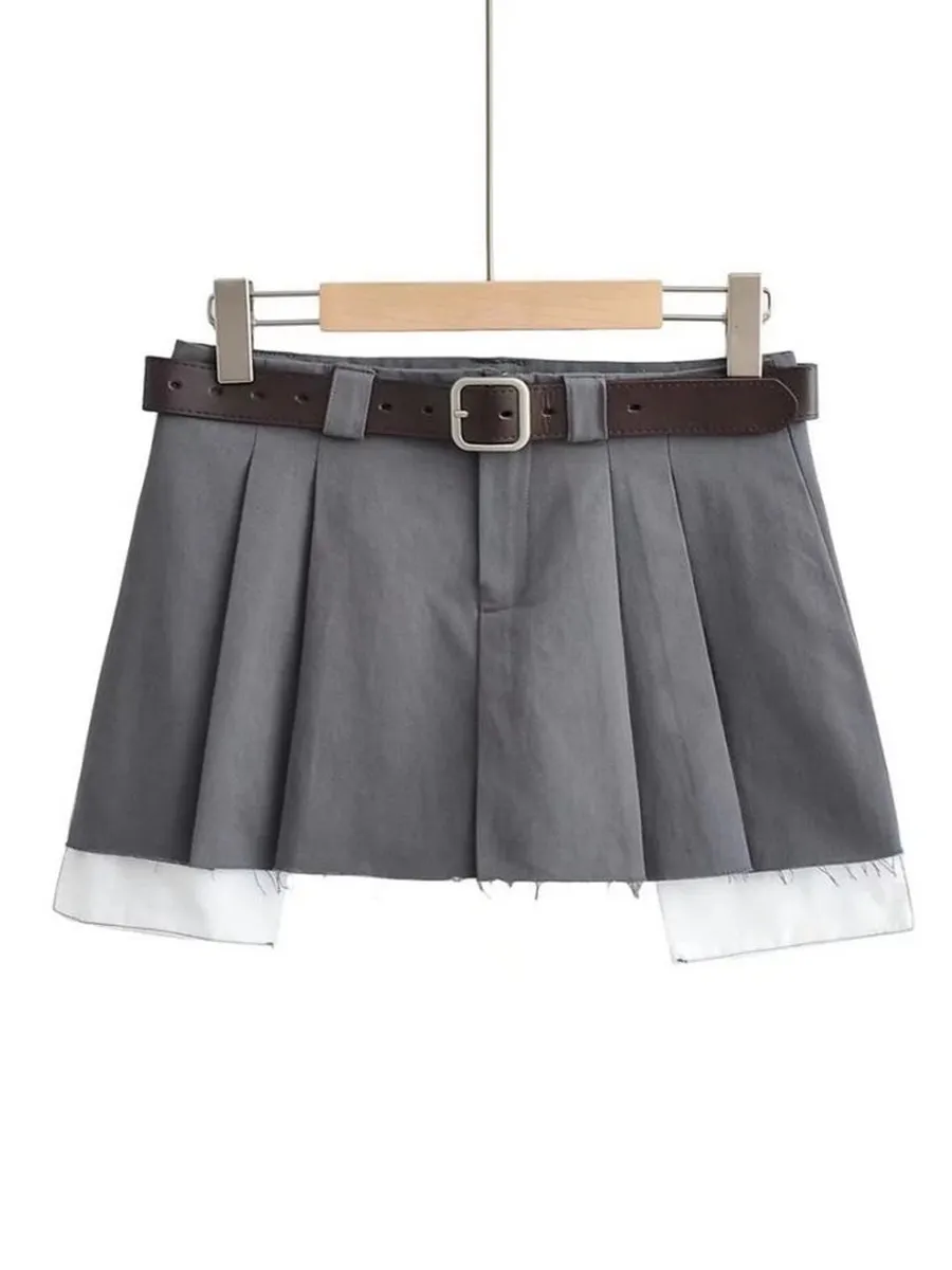 НОВИНКА! Тренд лета 2023 года - короткая плиссированная мини-юбка с низкой посадкой. Юбка трапециевидного кроя выполнена из легкой джинсовой ткани. В комплекте идет ремень из гладкой искусственной экокожи с металлической квадратной пряжкой в комплекте. Низкая посадка, подчеркивающая фигуру. Застежка на молнию. Короткая юбка А-силуэта с крупной плиссировкой, с декоративными контрастными белыми карманами выглядывающими из- под юбки. Юбка представлена в трех самых актуальных цветах: графит, черный, сафари/бежевый. Юбка выполнена из тонкого джинса, в ней не будет жарко даже в знойную летнюю жару. Юбка держит форму, внутри вшиты потайные белые хлопковые мини-шортики, что делает юбку более комфортной в носке. Мини-юбка в крупную складку для милых и женственных луков с блузками или рубашками в школу, университет, офис или просто на каждый день - дополни свой образ стильным оверсайз-пиджаком, укороченным пиджаком или жилетом. Короткая юбка-трапеция, которая идеально сочетается как с однотонными лонгсливами и водолазками, так и с яркими свитерами и толстовками.Сочетай ее также со своими любимыми топами, футболками или рубашками и создавай расслабленные повседневные кэжуал-аутфиты, которые подчеркнут твою фигуру и в которых ты гарантированно не останешься без внимания.