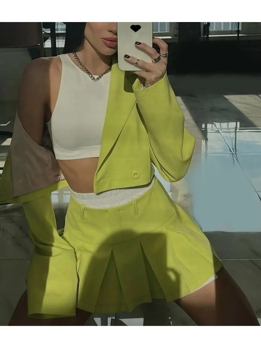 НОВИНКА! Тренд лета 2023 года - низкая посадка плиссированной юбки в паре с выглядывающими резинками от трусов/ шортиков. Короткая плиссированная мини-юбка трапециевидного кроя выполнена из легкой костюмной ткани. ВНИМАНИЕ! Шортики в комплект не входят, их можно приобрести отдельно в нашем магазине (пример на фото). Юбка с высокой посадкой, подчеркивающая фигуру. Застежка на потайную молнию сбоку. Короткая юбка А-силуэта с крупной плиссировкой, с декоративными контрастными белыми карманами, выглядывающими из-под юбки.