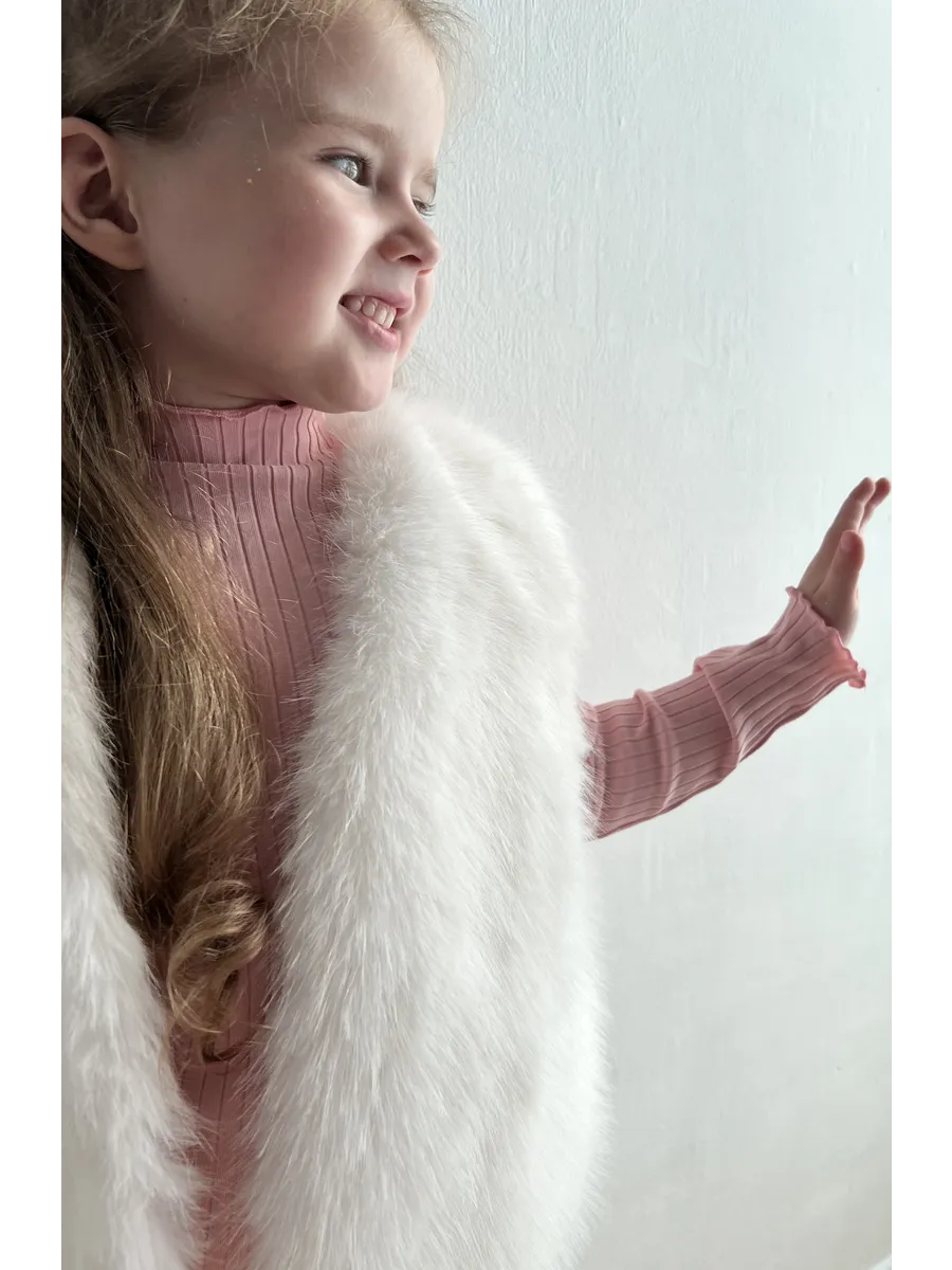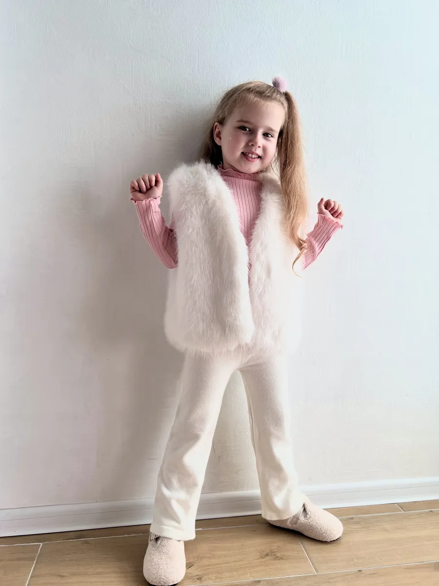 Этот стильный жилет из искусственного меха станет любимой вещью вашей дочери в прохладную погоду. Его мягкий и пушистый мех создает ощущение комфорта и тепла, а оверсайз крой обеспечивает свободу движений. Жилет оснащен удобными боковыми карманами для мелочей и застегивается на крючки. Благодаря универсальным расцветкам, он легко сочетается с различными нарядами, идеально подходя для прогулок в садике, школы или повседневной носки.