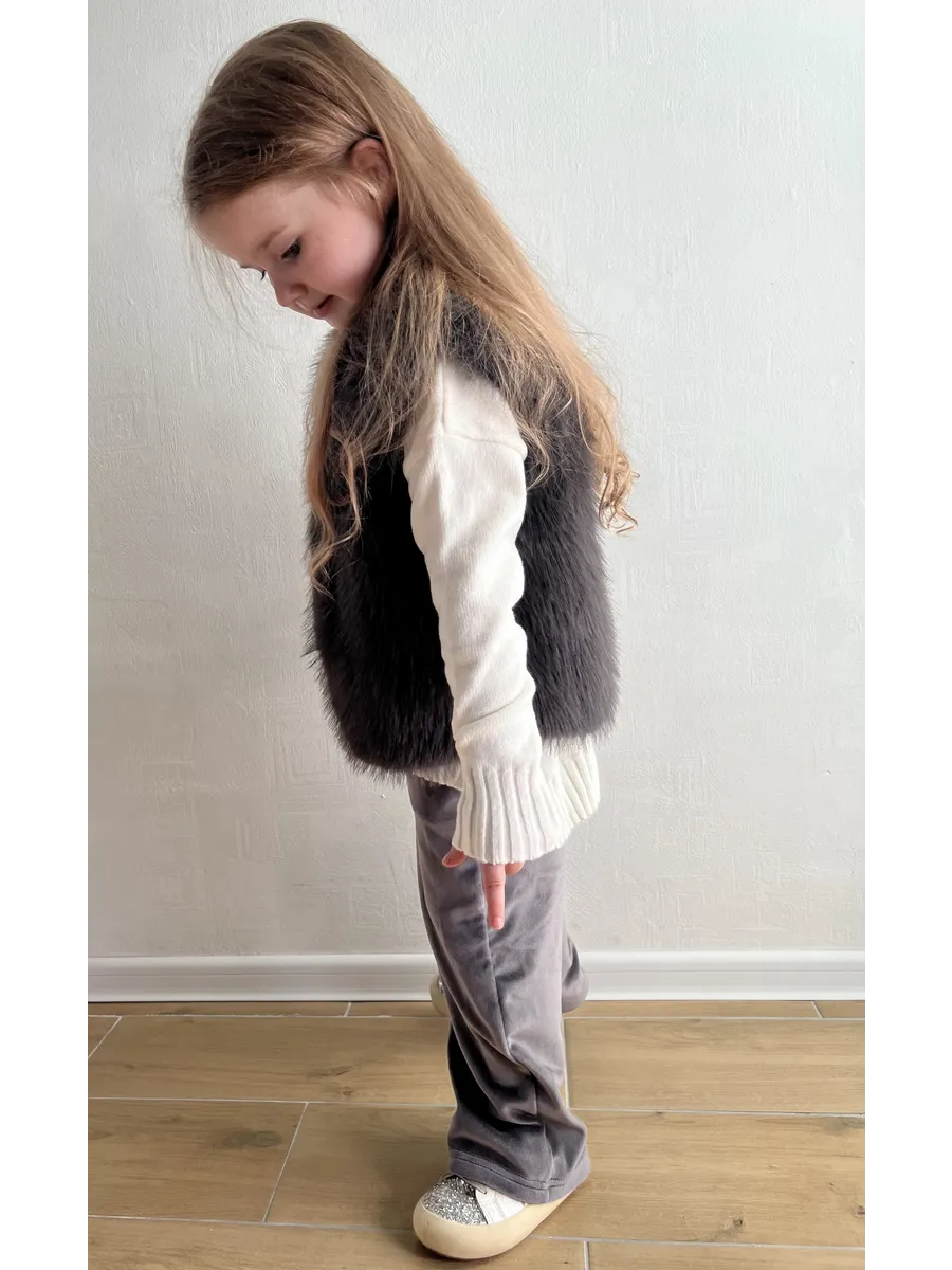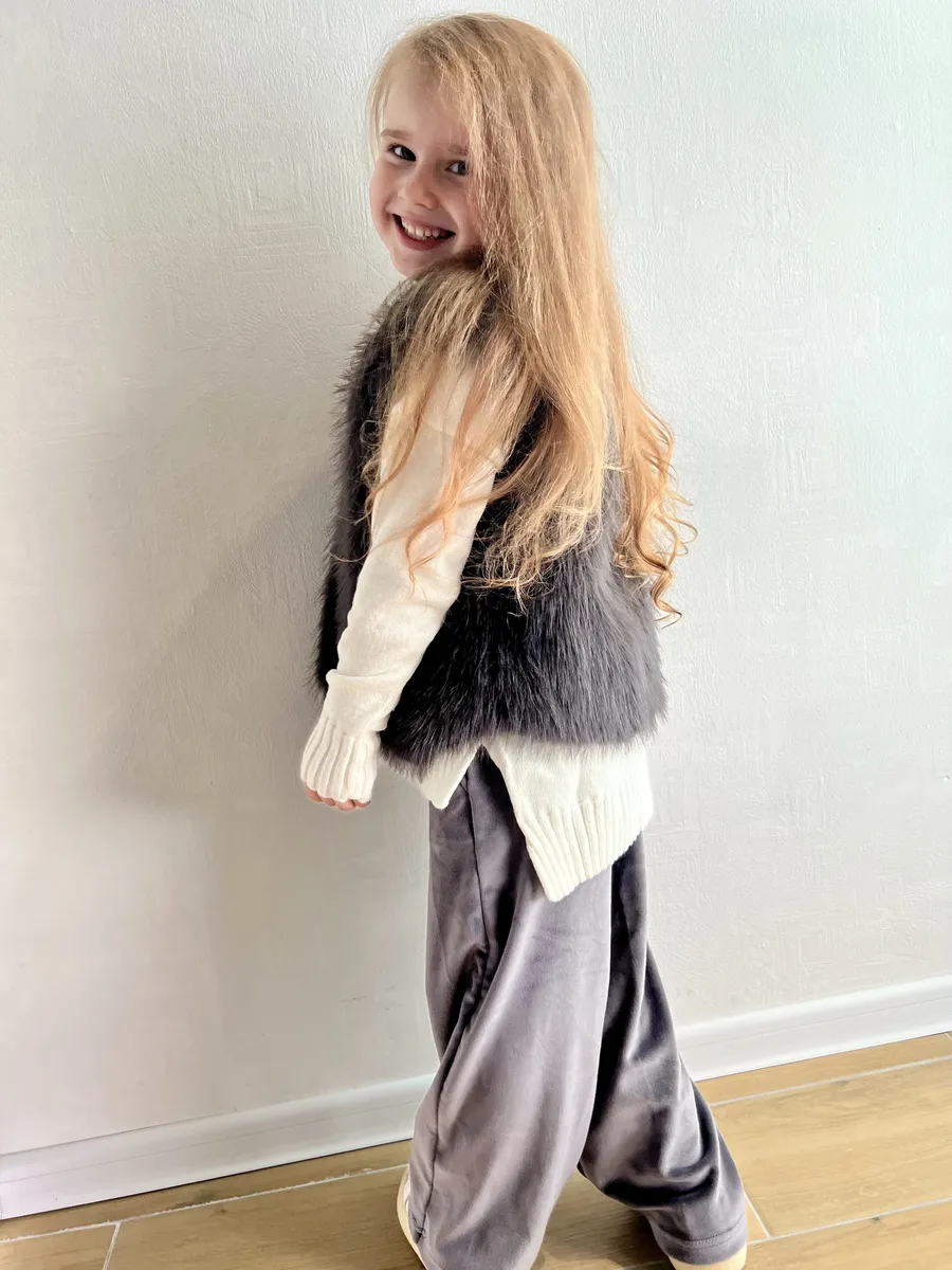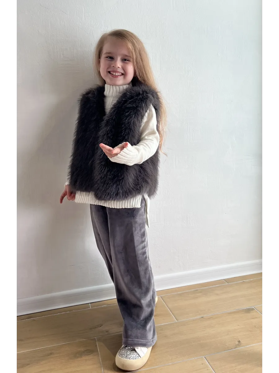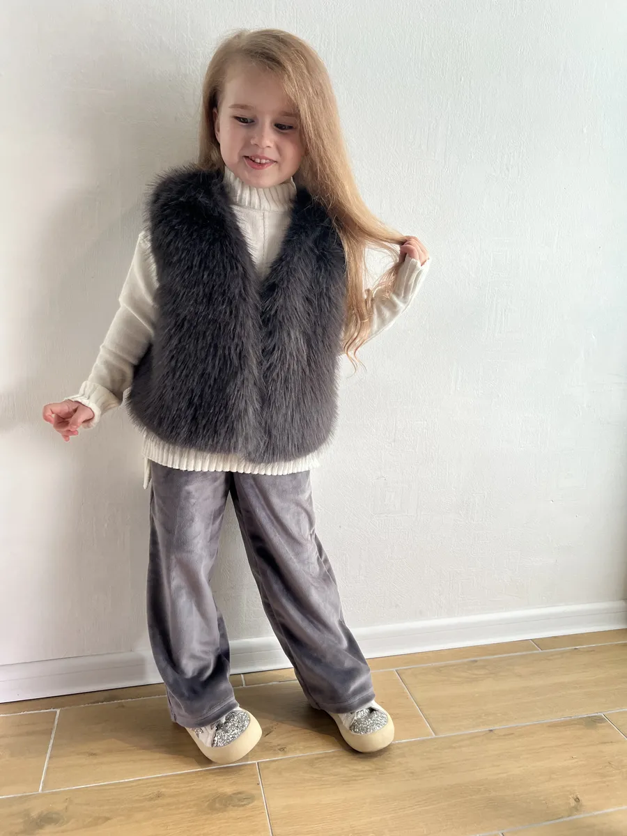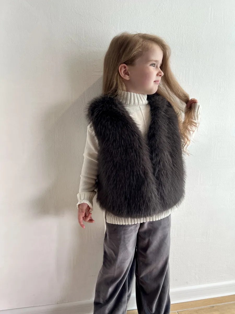 Этот стильный жилет из искусственного меха станет любимой вещью вашей дочери в прохладную погоду. Его мягкий и пушистый мех создает ощущение комфорта и тепла, а оверсайз крой обеспечивает свободу движений. Жилет оснащен удобными боковыми карманами для мелочей и застегивается на крючки. Благодаря универсальным расцветкам, он легко сочетается с различными нарядами, идеально подходя для прогулок в садике, школы или повседневной носки.
